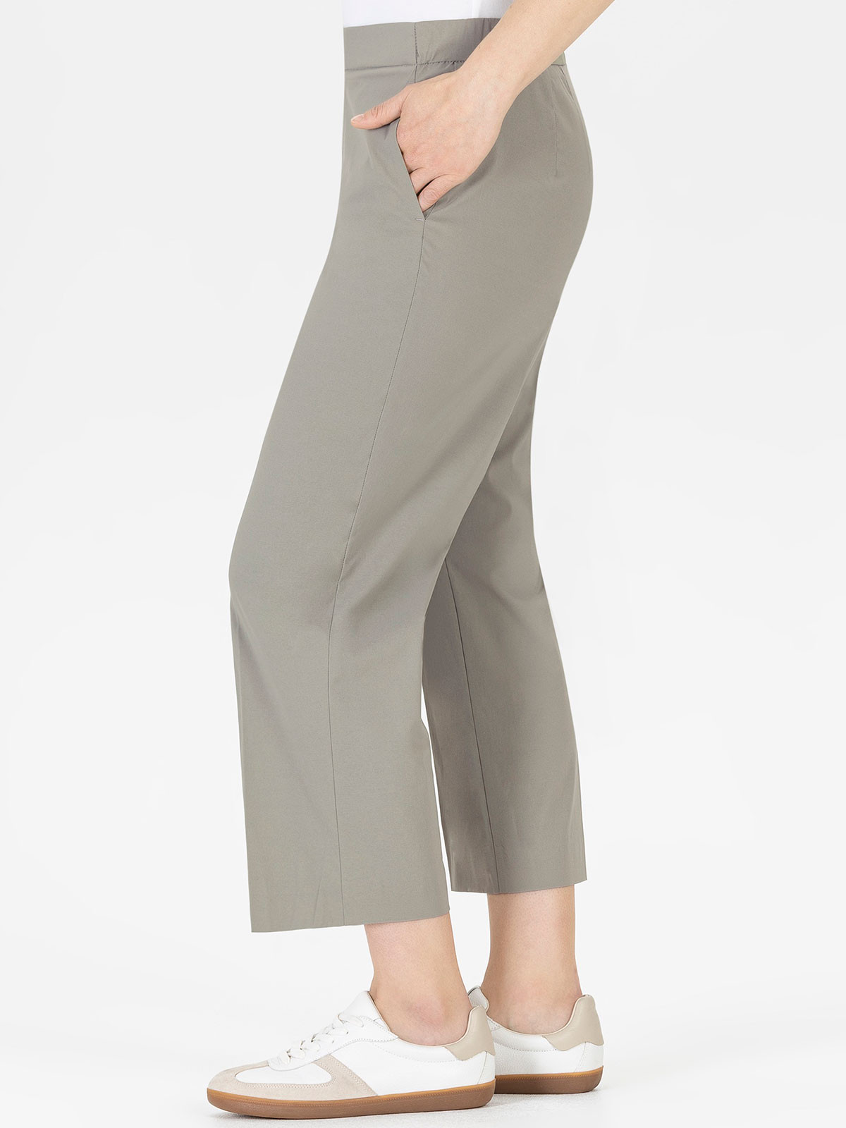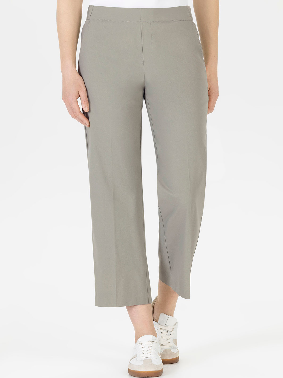 En ny kvalitet på mirakelbyxor från Stehmann. Tyget är tunnare av viskosmix och har ett både elagantare och sportigare uttryck. Modellen Fenja är croppad till en 7/8-delslängd och har ett helt rakt ben. Midjan är medelhög och har en bred, dold resår. Byxorna har snedställda fickor fram och pressveck. Superskön stretch!