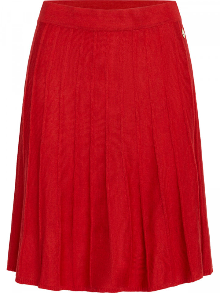 Fintstickad kjol från Claire Woman. Modellen är A-linjeformad, knälång och har stickade veck. Bred stickad resår i midjan vilket gör den till en bekväm dra-på-modell.