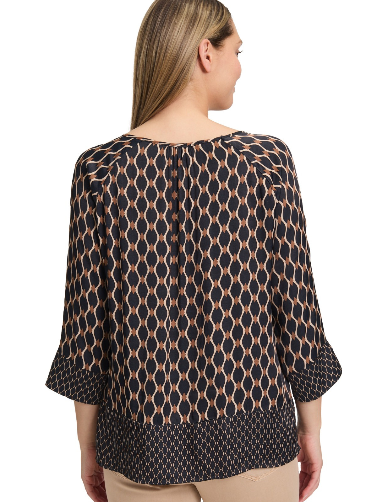 En vacker blus från Betty Barclay i svart och camel. Tyget är väldigt mjukt och skönt att bära, faller fint. 3/4 dels ärm.