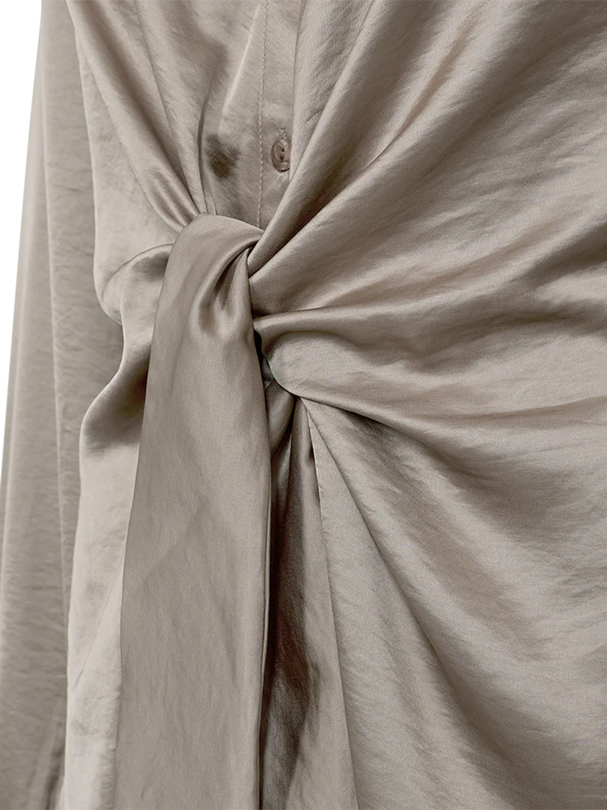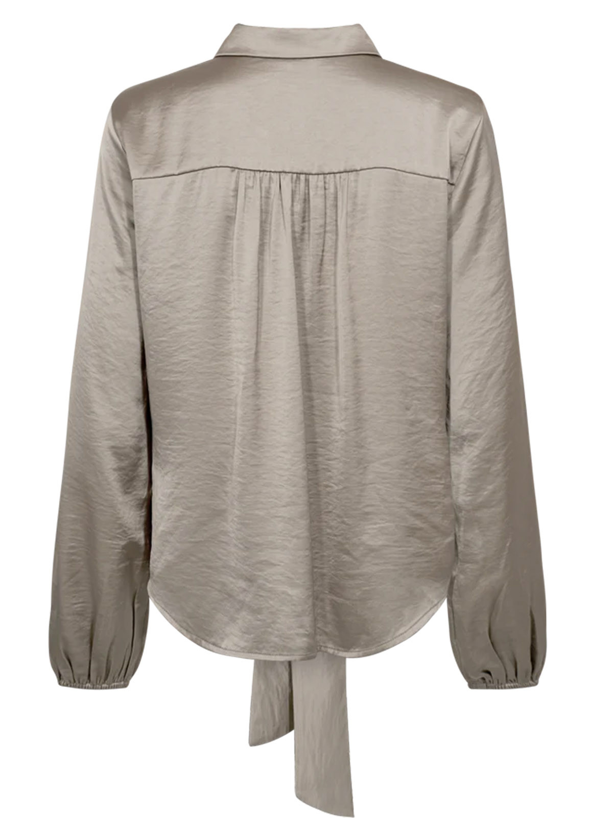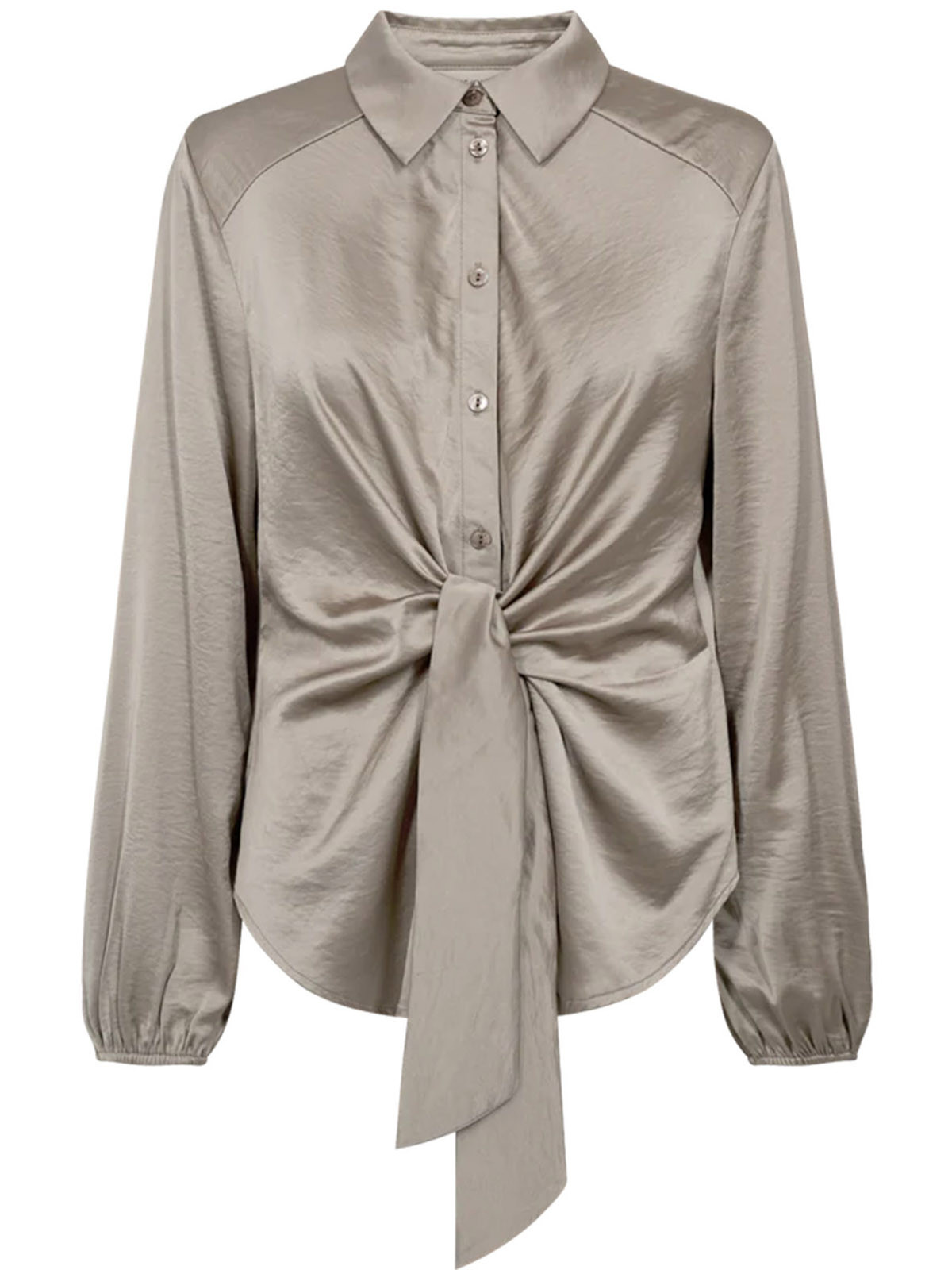 Fin satinblus från FREEQUENT med knytband som snygg detalj. Modellen är rak, har lång och vid ärm med avsmalnande resår i nederkant.