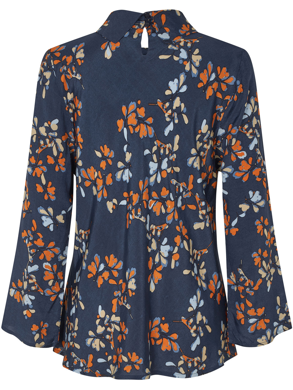 Blusen fån Masai är designad med hög hals och långa ärmar med extra vidd. Den mjuka viskosen är skuren i den populära bias-passform, så toppen följer kroppens former fint och elegant utan att sitta åt. En fin och feminin topp som du enkelt kan styla med dina favoritbyxor eller kjol.