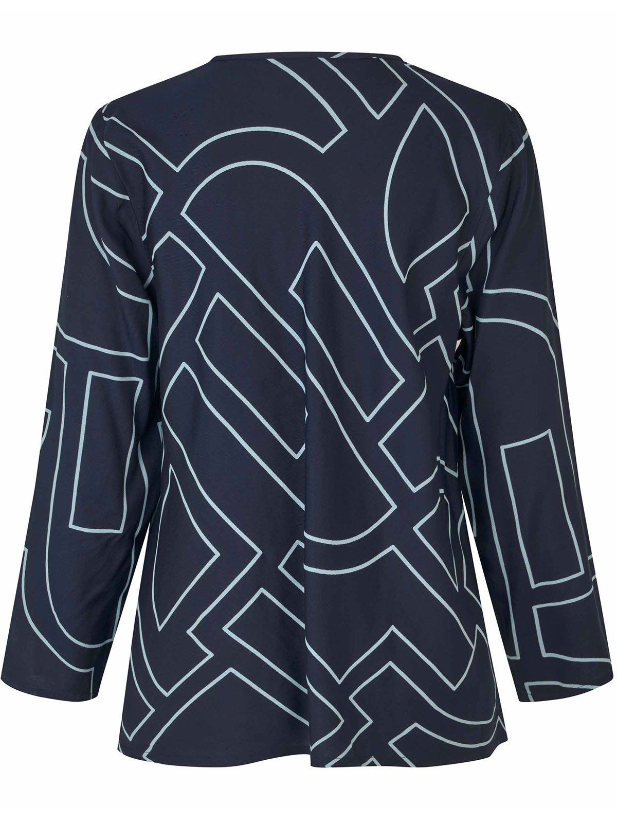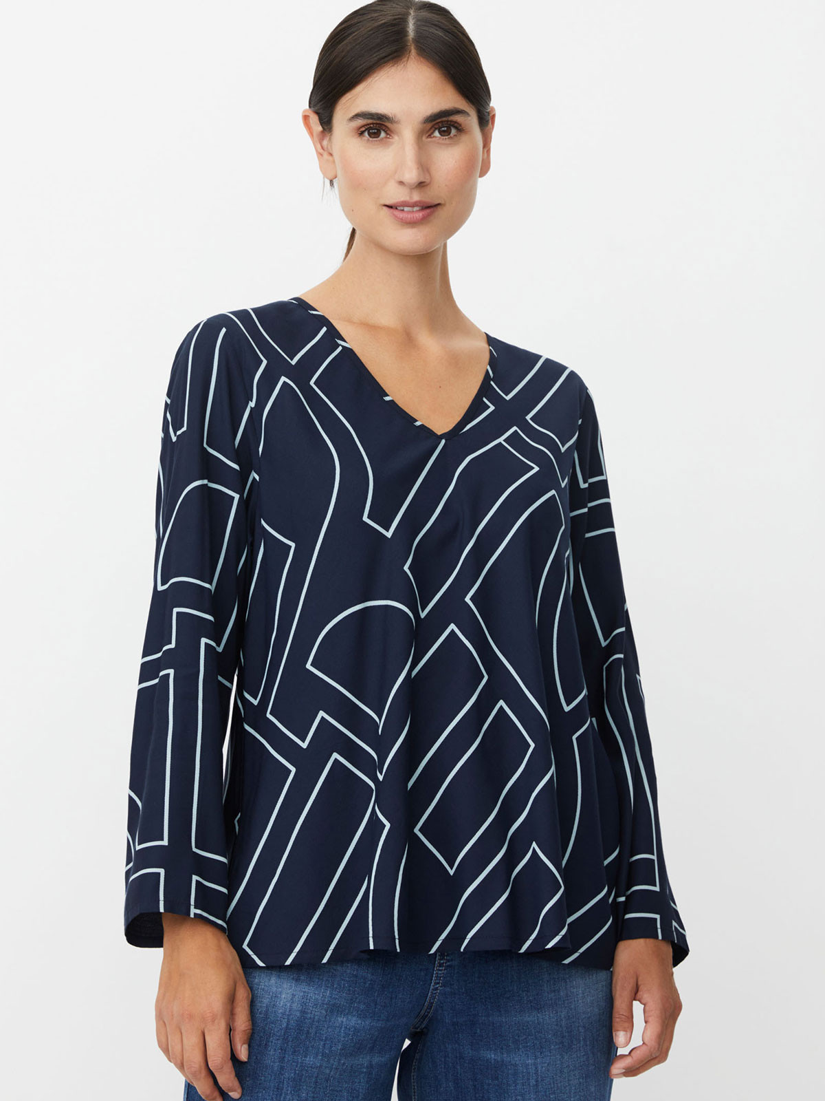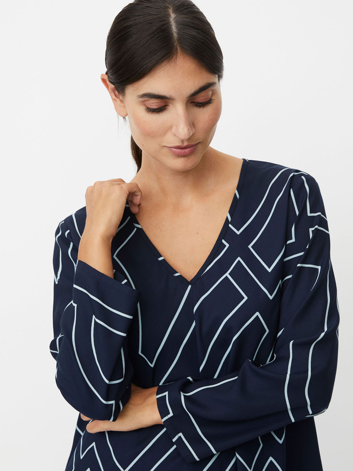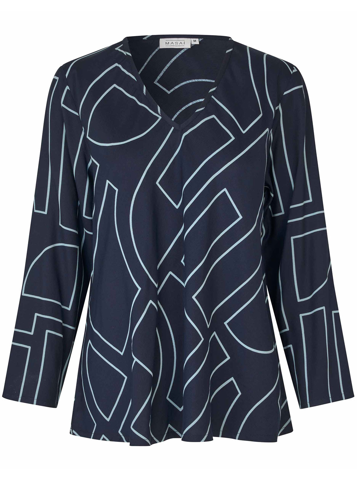 Denna tunika från Masai är designad med en feminin V-ringning och trekvartslånga ärmar. Modellen är A-linjeformad och är snygg till både byxor och kjol.