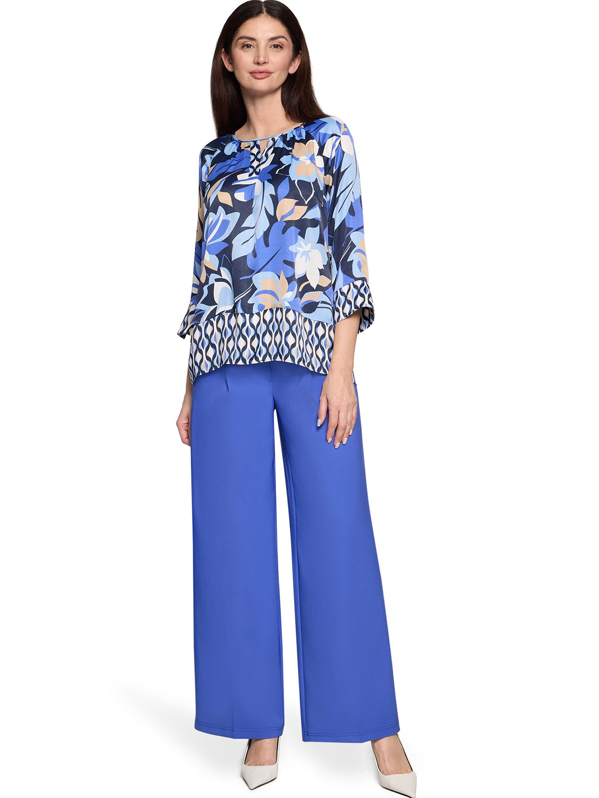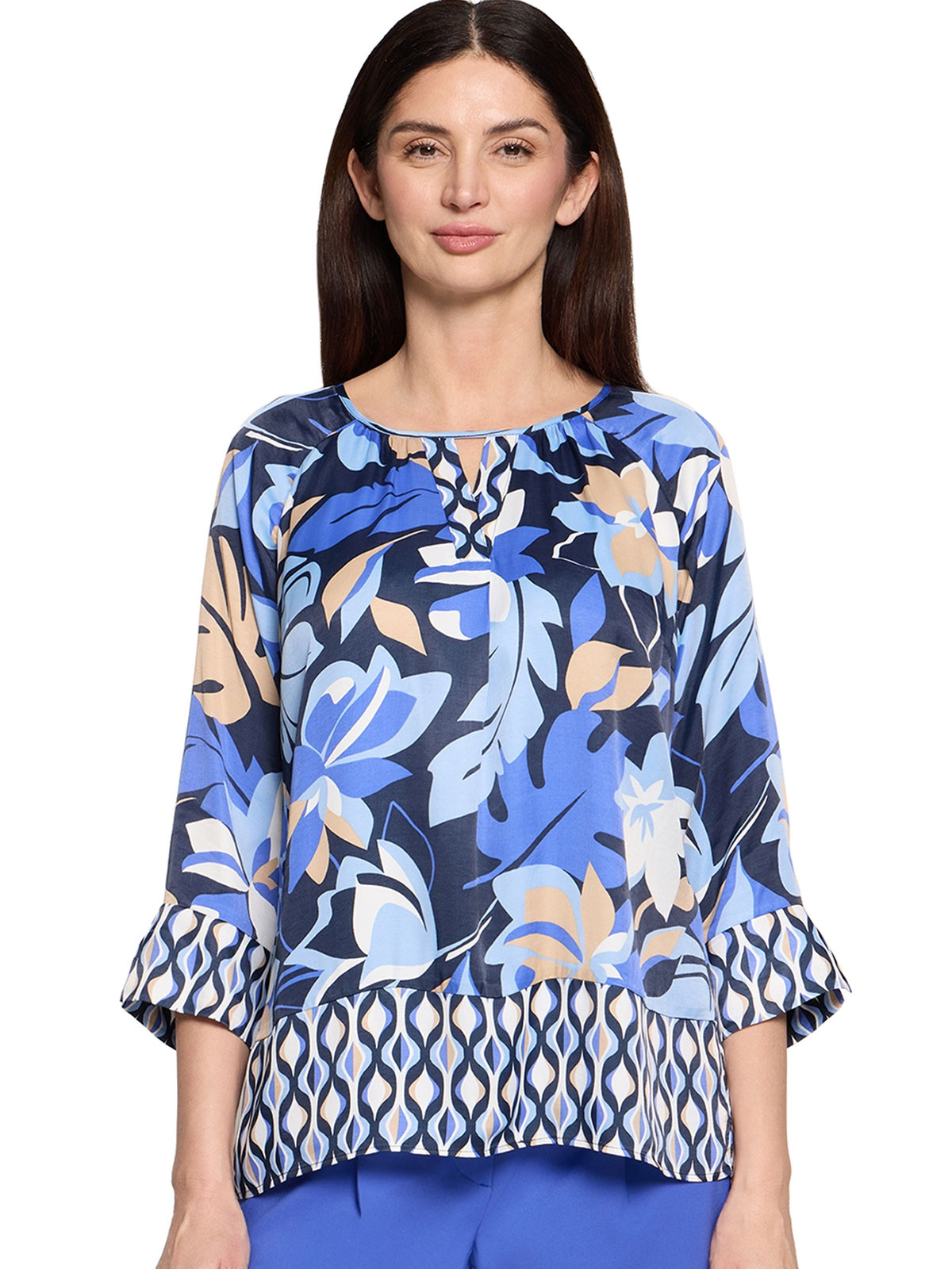 Härlig satinblus (halvblank) i viskos från Betty Barclay i olika blå nyanser.