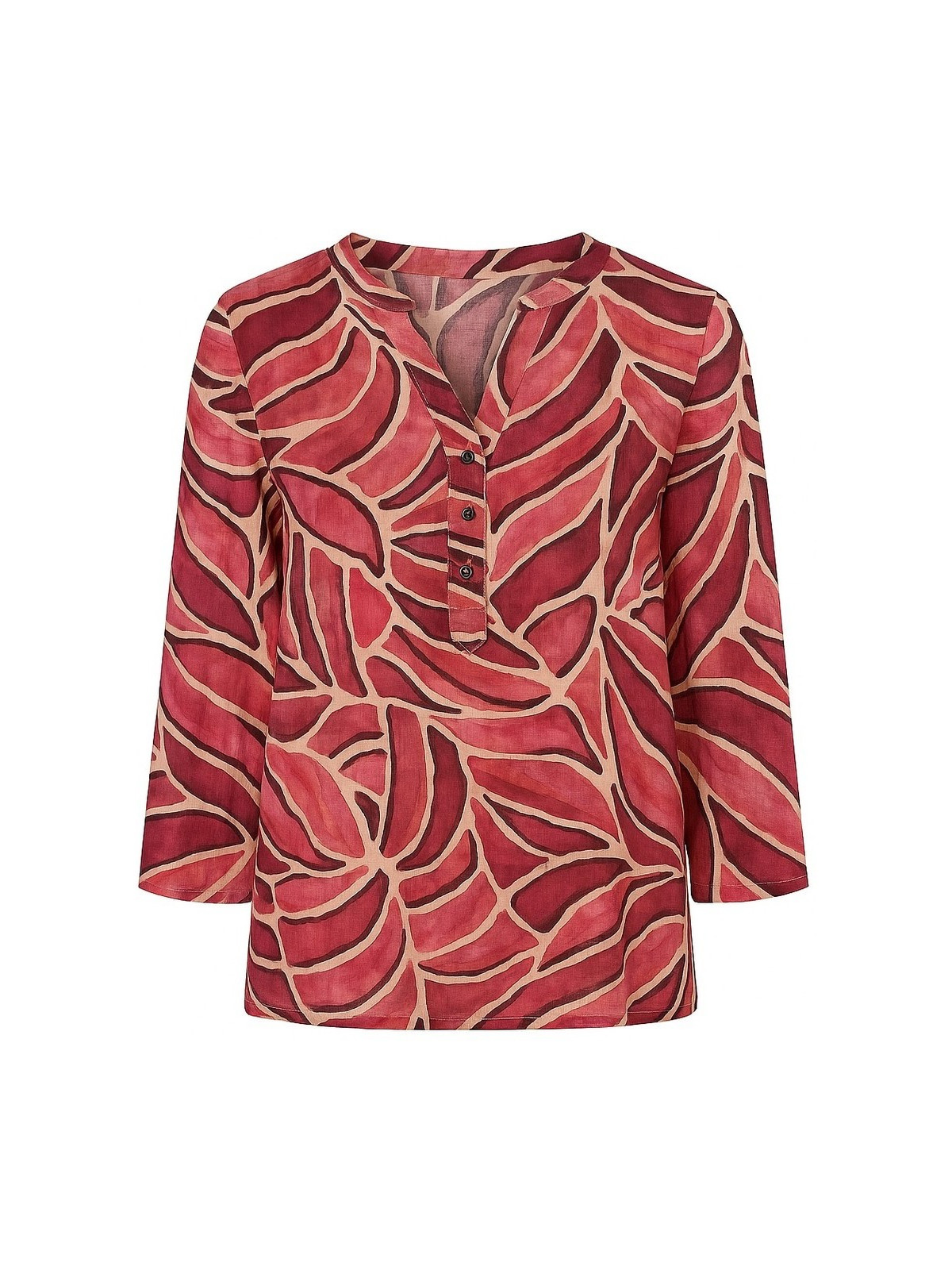 Elegant blus från 2Biz i ett strukturerat viskostyg. Modellen är rymlig och har rundringad hals med V-formad öppning och tre knappar.