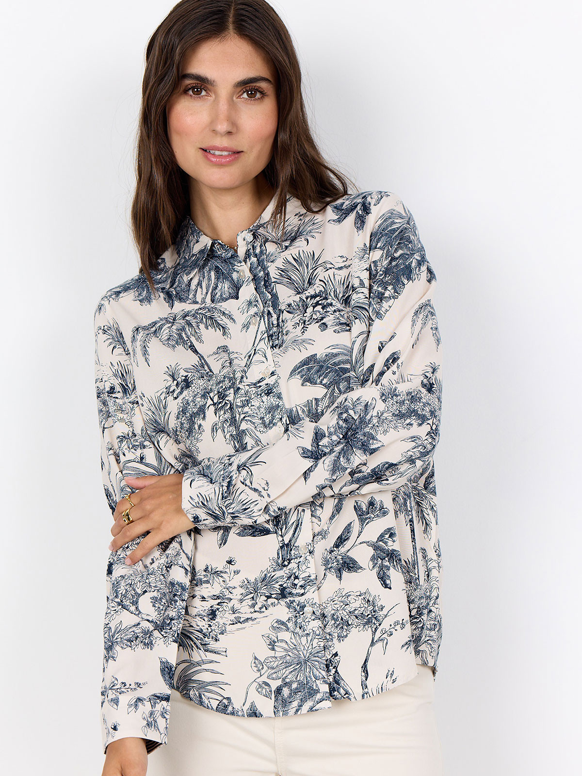 Viskosblus Carli marin på cremevit från SoyaConcept