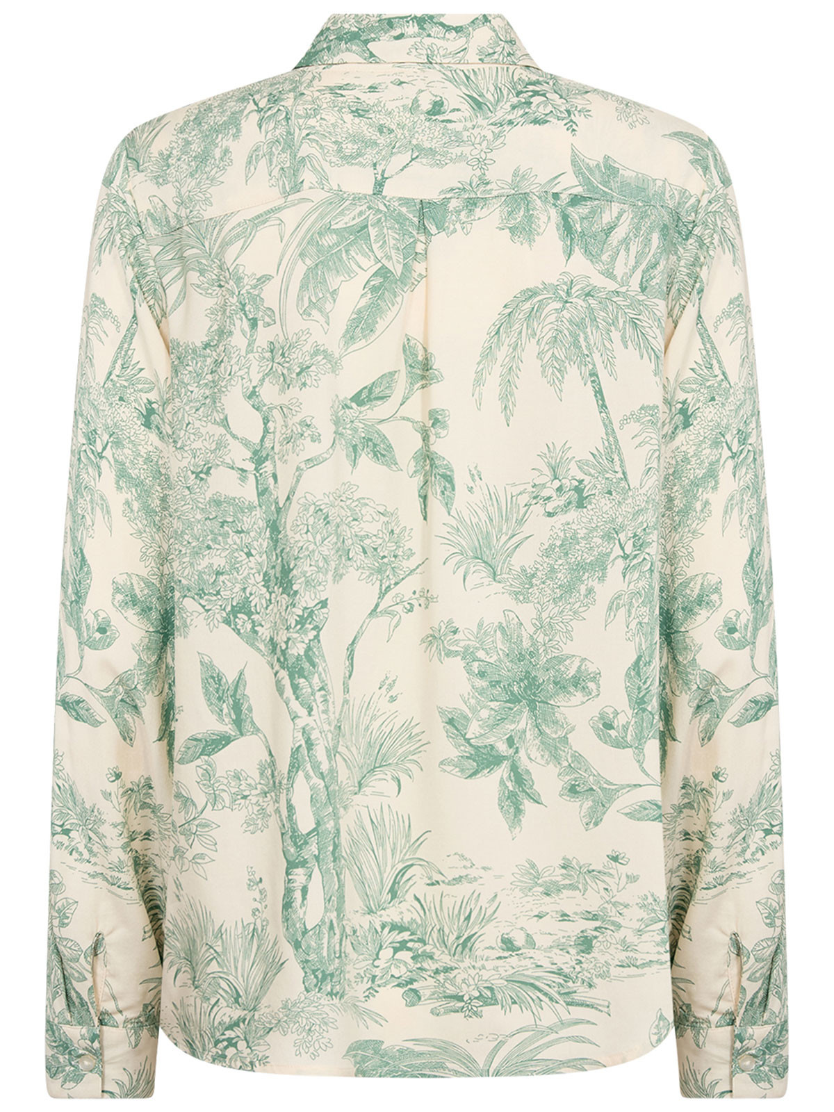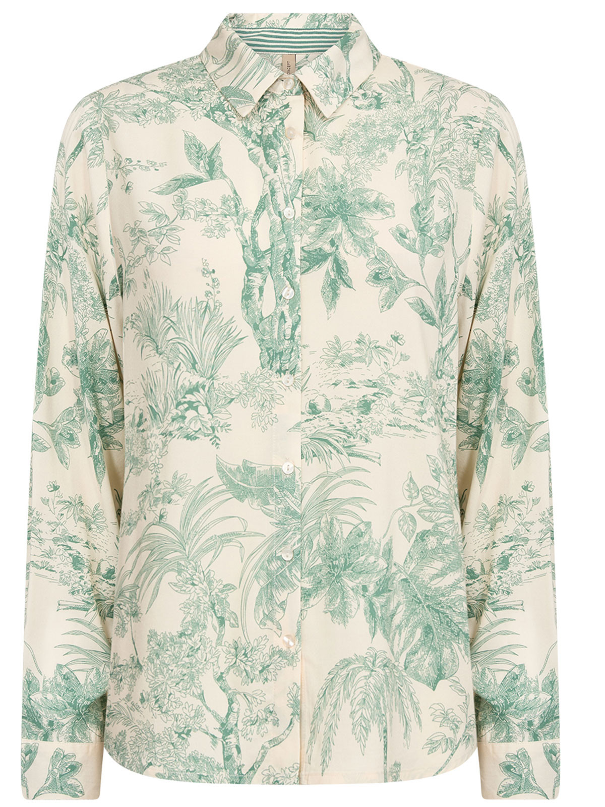 Underbar viskosblus från SoyaConcept i ledig passform. Modellen är klassisk med skjortkrage, hellång ärm med manschett och knäppning med pärlemoknappar hela vägen fram.