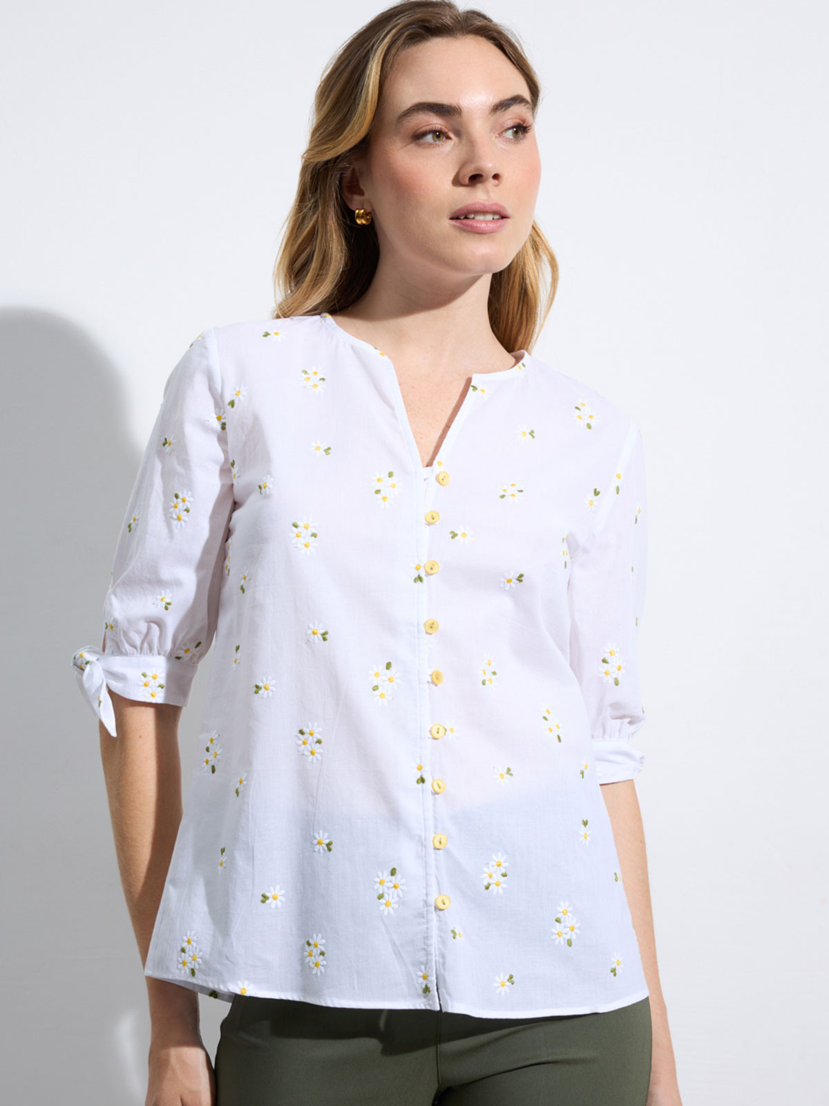 Bomullsblus Flores vit prästkragar från Bariloche