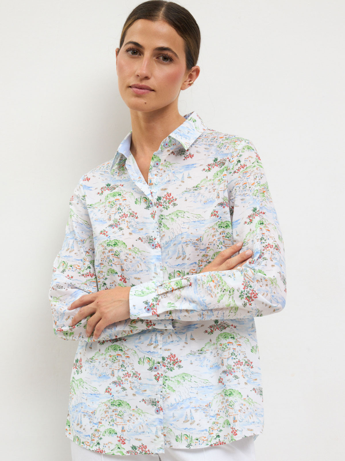 Bomullsskjorta Mileva multi på vit från Tinta Style