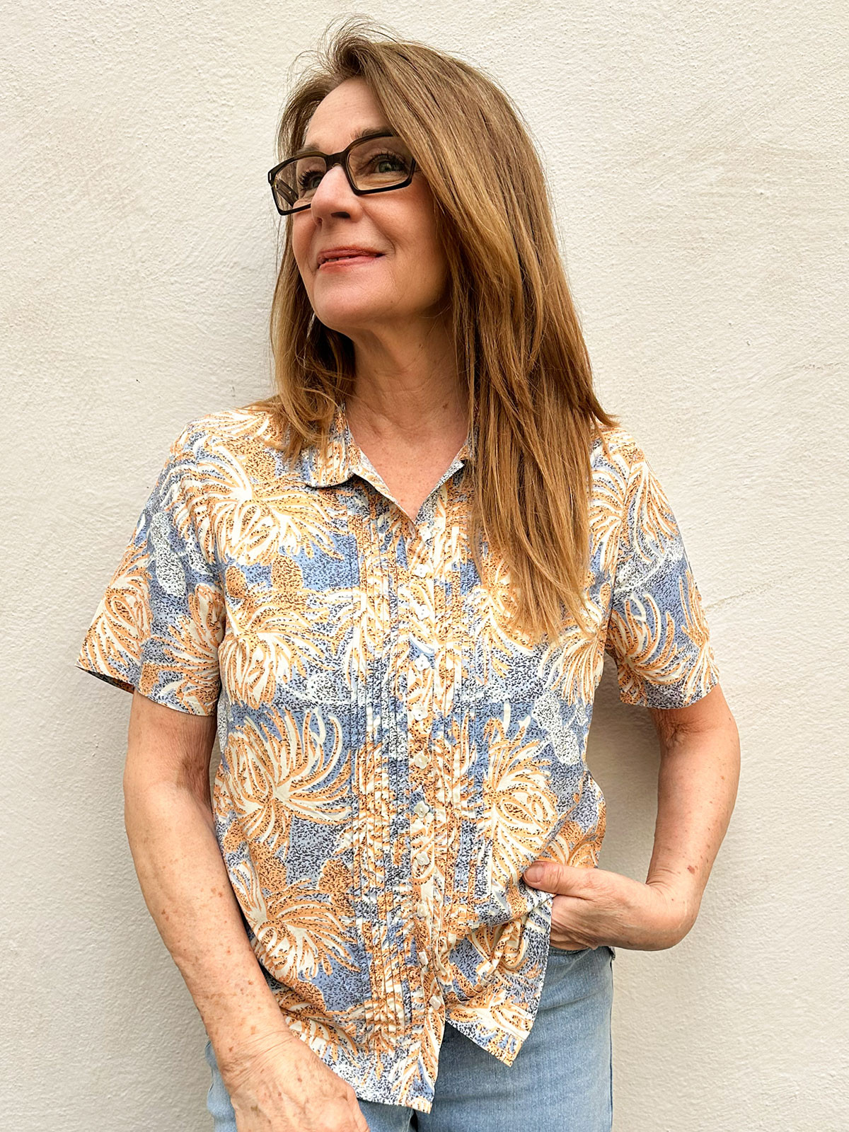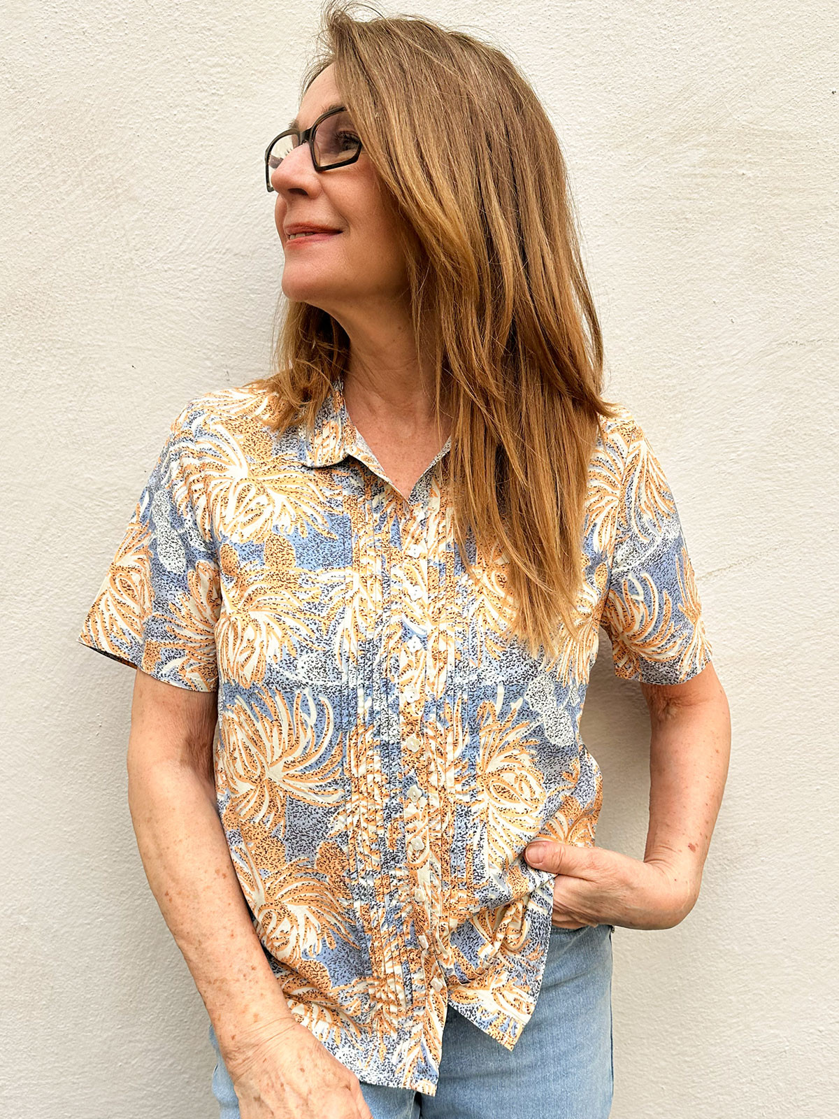 Viskosblus Kalua ljusblå/aprikos från Gossip