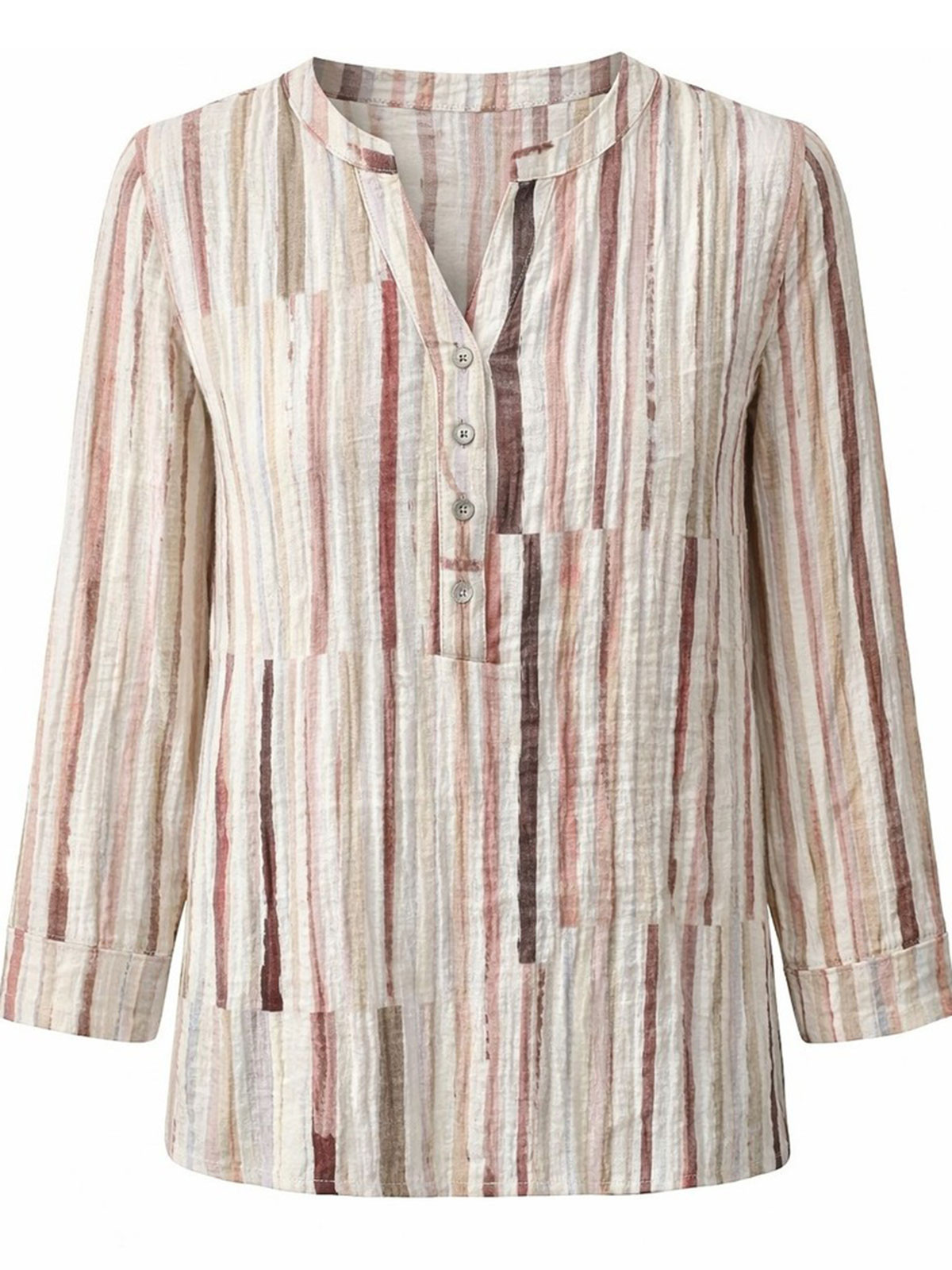 Elegant blus från 2Biz i ett strukturerat viskostyg. Modellen är rymlig och har rundringad hals med V-formad öppning och tre knappar.