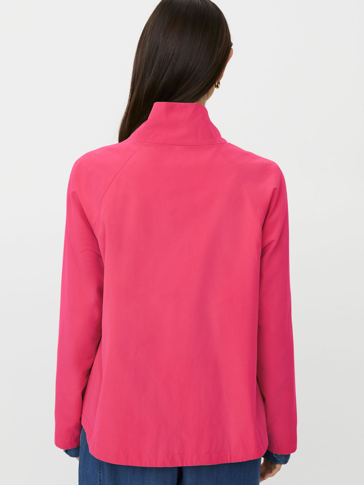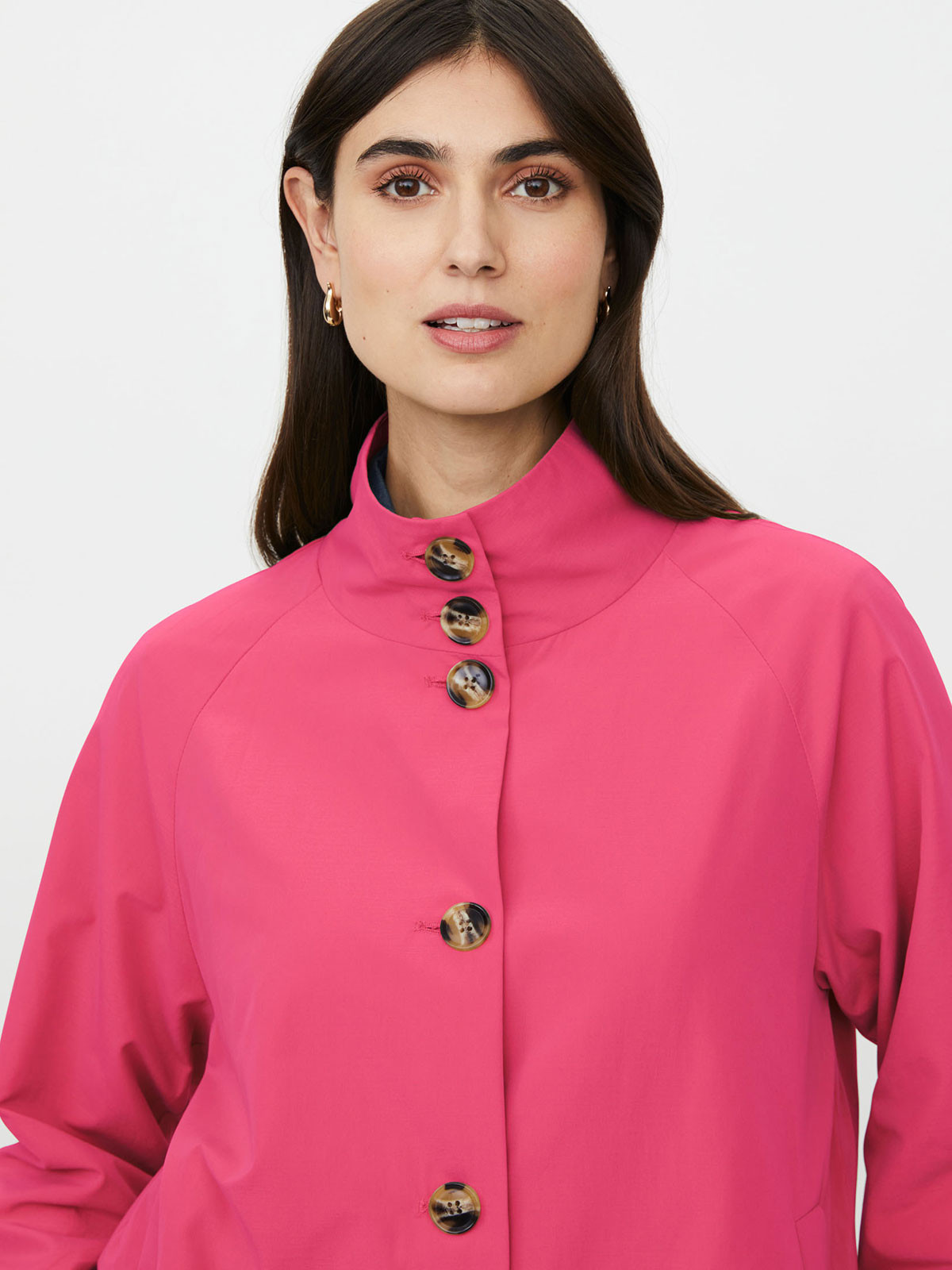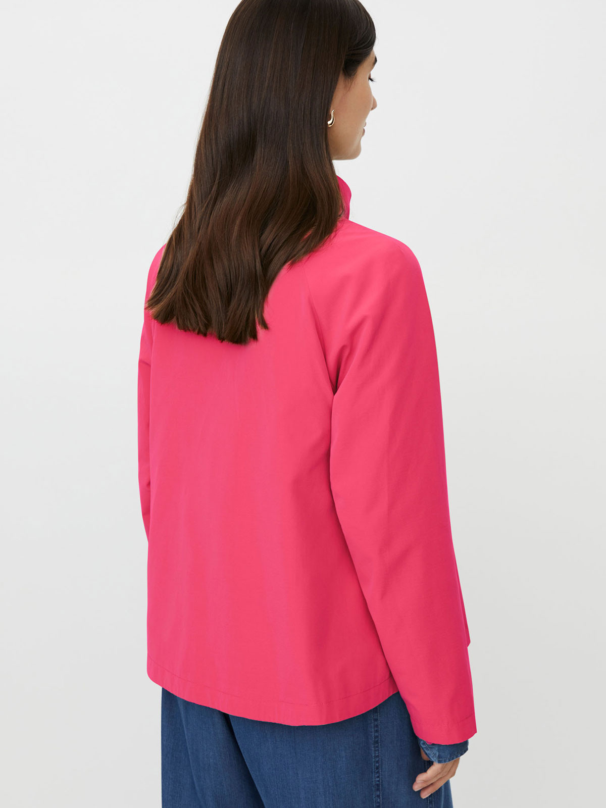 Vårjackan Tynna från Masai är en kortare variant av modellen Teresa. Den har skorstenskrage och knäppning med melerade knappar. Den är fodrad och har snedställda fickor fram.