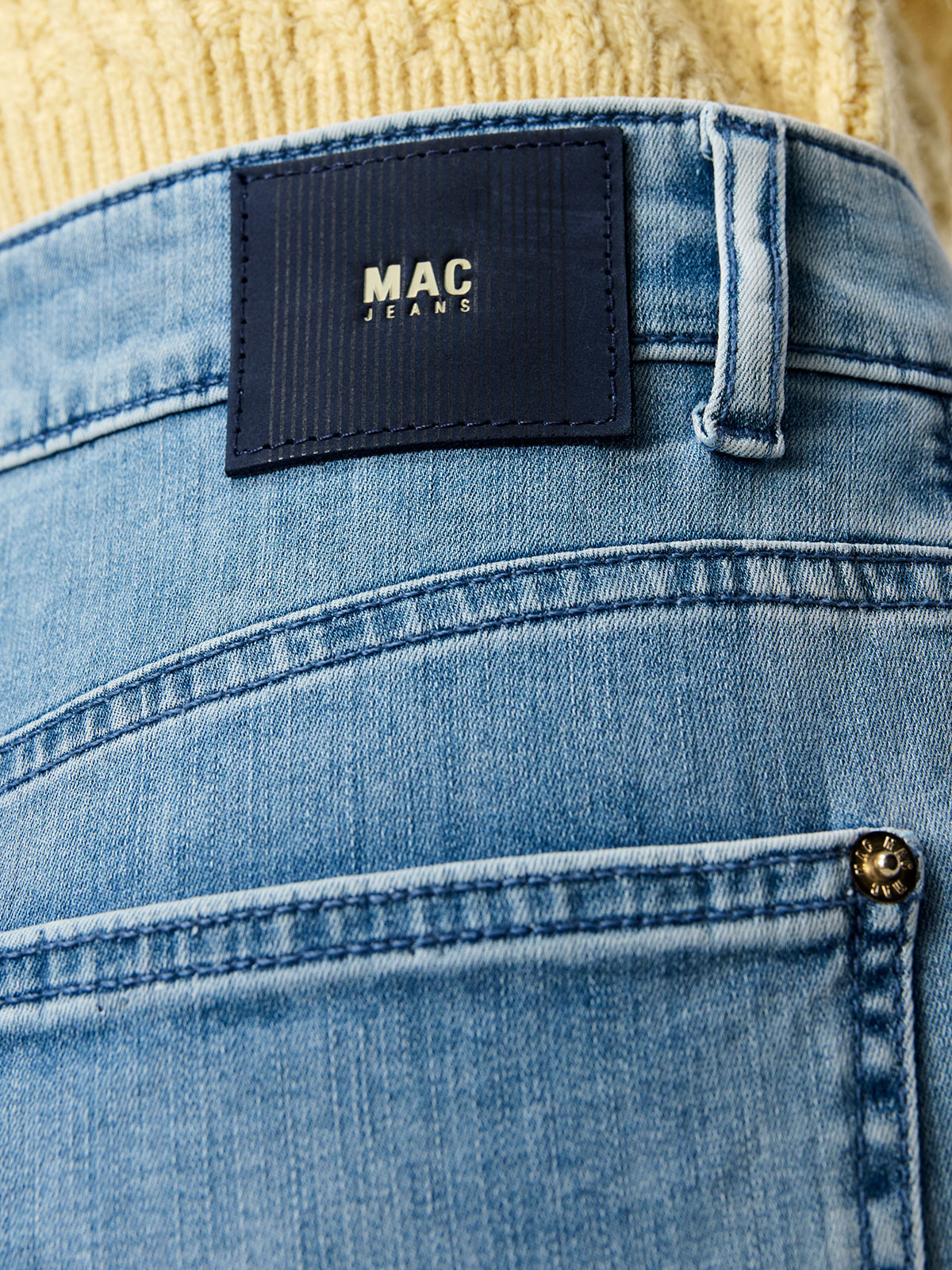 Jeans från Mac med ett vidare ben som smalnar av nertill, så kallad "Barrel leg". Modellen är ledig och vid med klassiska femficksdetaljer och hällor. Benet som smalnar av nertill har 7/8-delsslängd.
