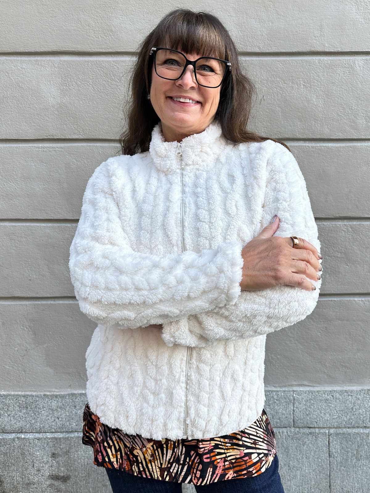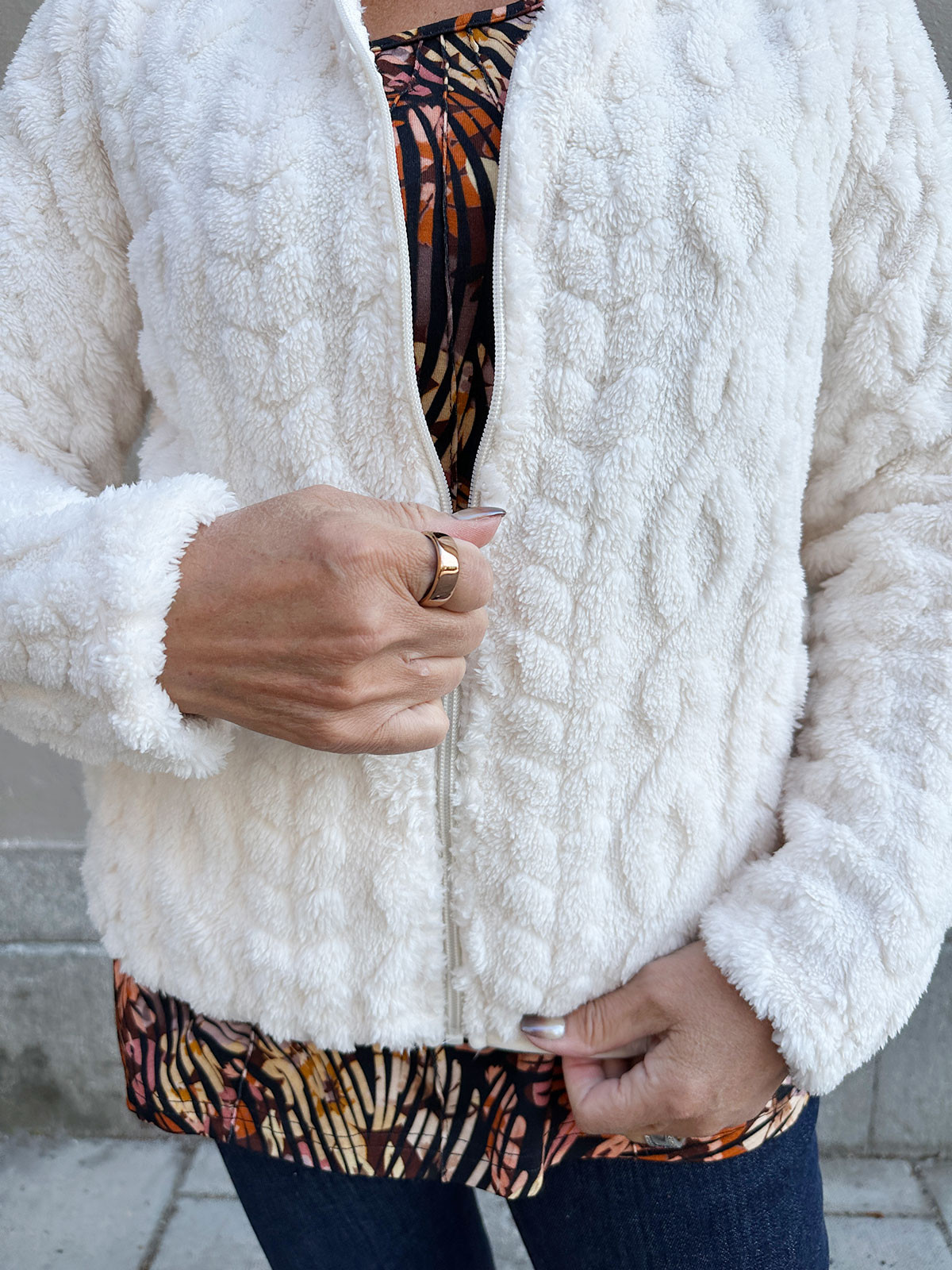 Det här är nog den gosigaste jackan som finns! :) Helt underbart mjuk på både in- och utsida. Modellen är rak och har en dragkedja fram som när den stängs ger en värmande ståkrage. Sidofickor med dragkedja. Ofodrad.