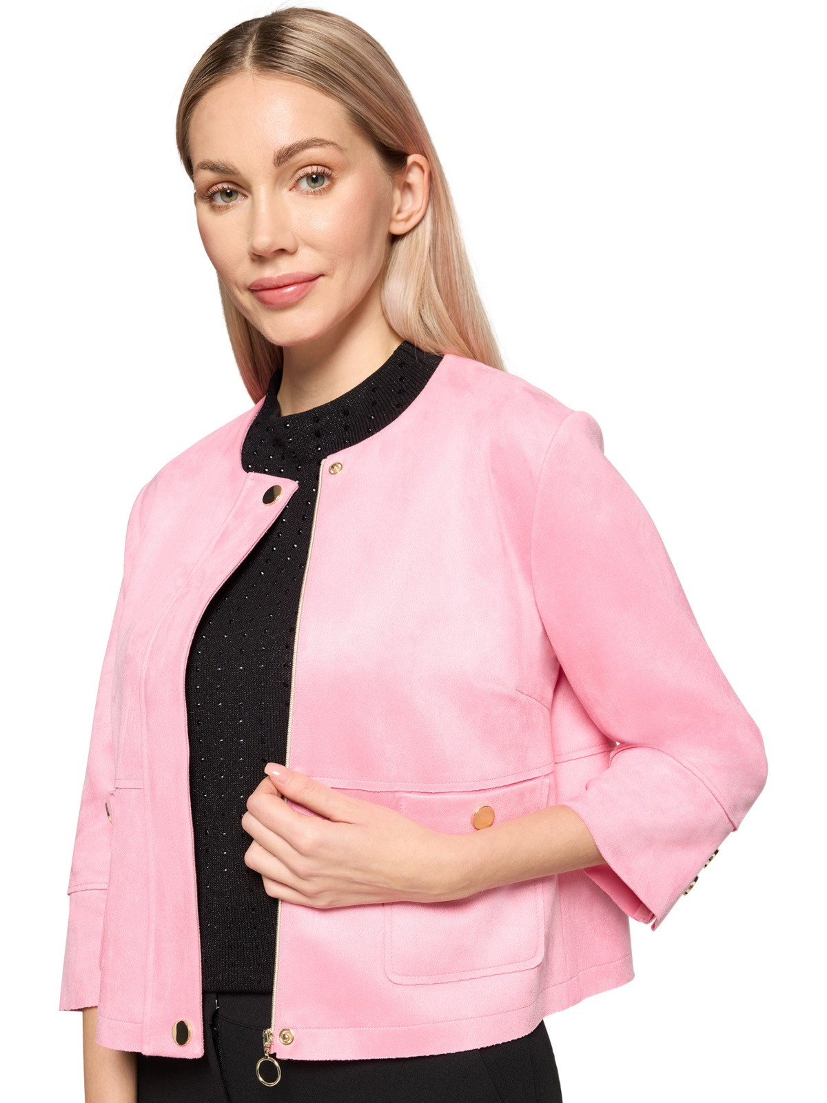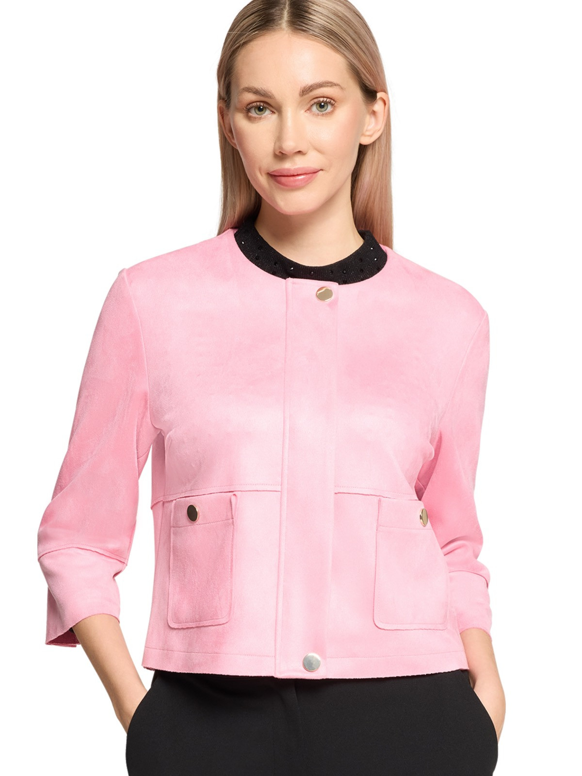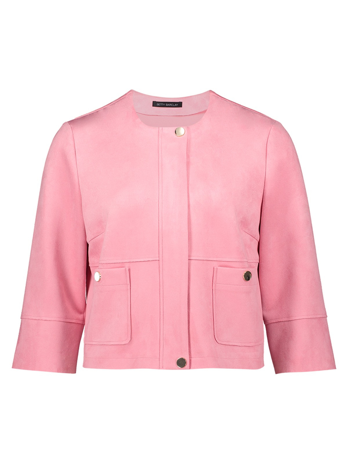 En superhärlig jacka i fuskmocka från Betty Barclay i vårlig bubbelgumsrosa.