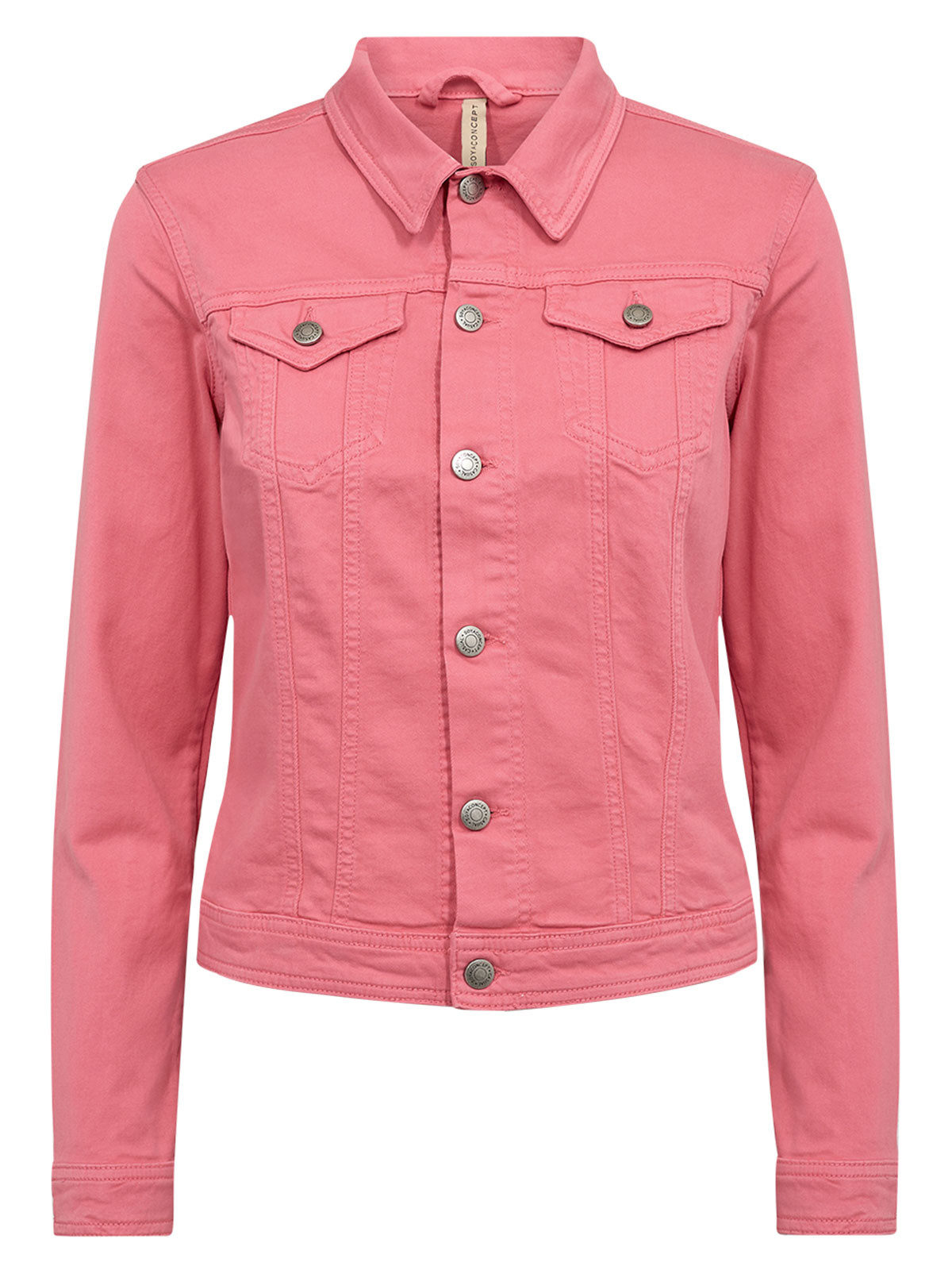 Klassisk jeansjacka från Soyaconcept. Skjortkrage, lång ärm, två bröstfickor med lock och knapp, stängs med knappar.