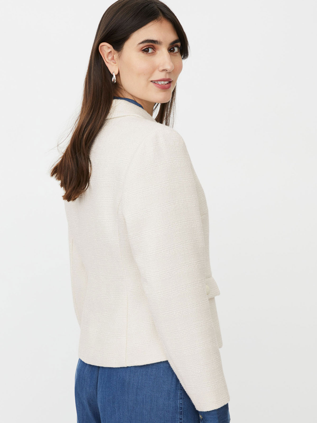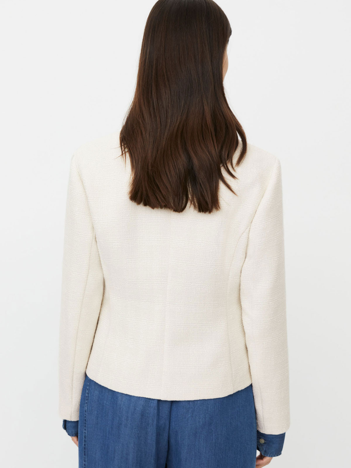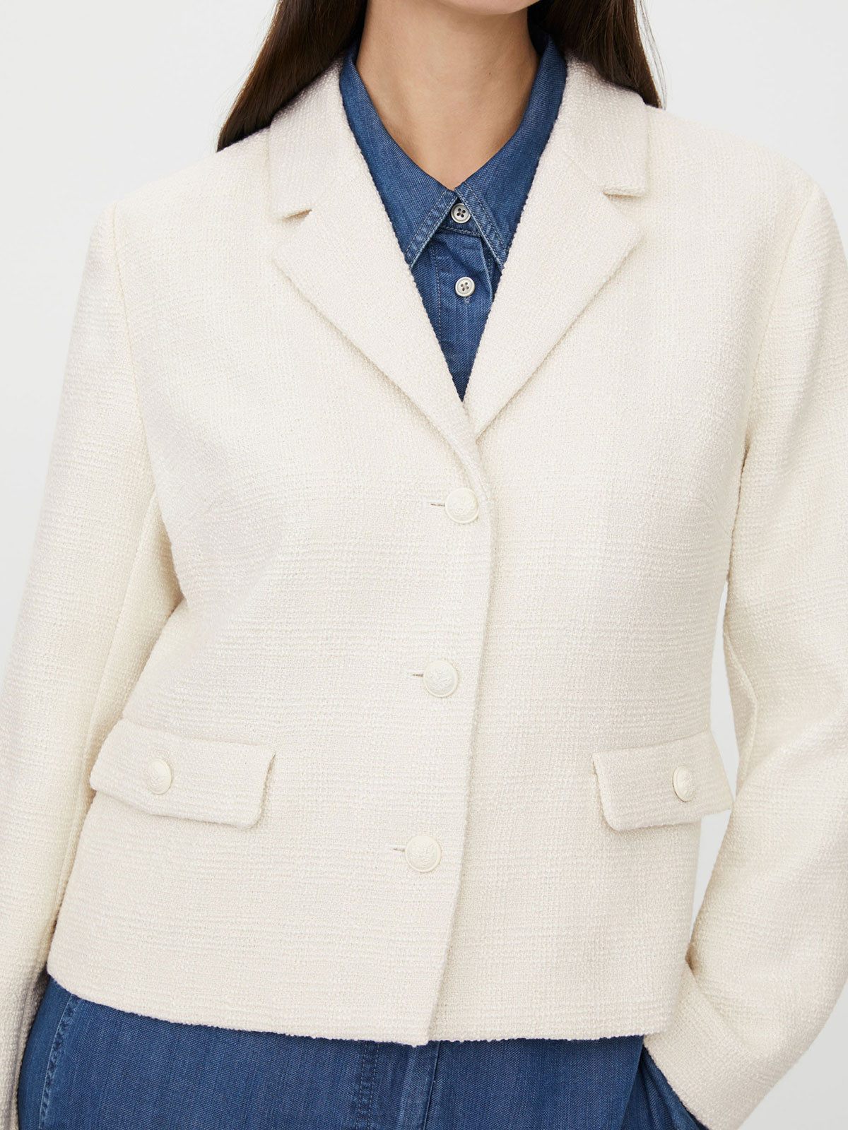 Boucléjacka från Masai i en klassisk modell. Den är lätt figursvängd utan att vara tajt och knäpps med dekorknappar, har två fickor med lock och hellång ärm.