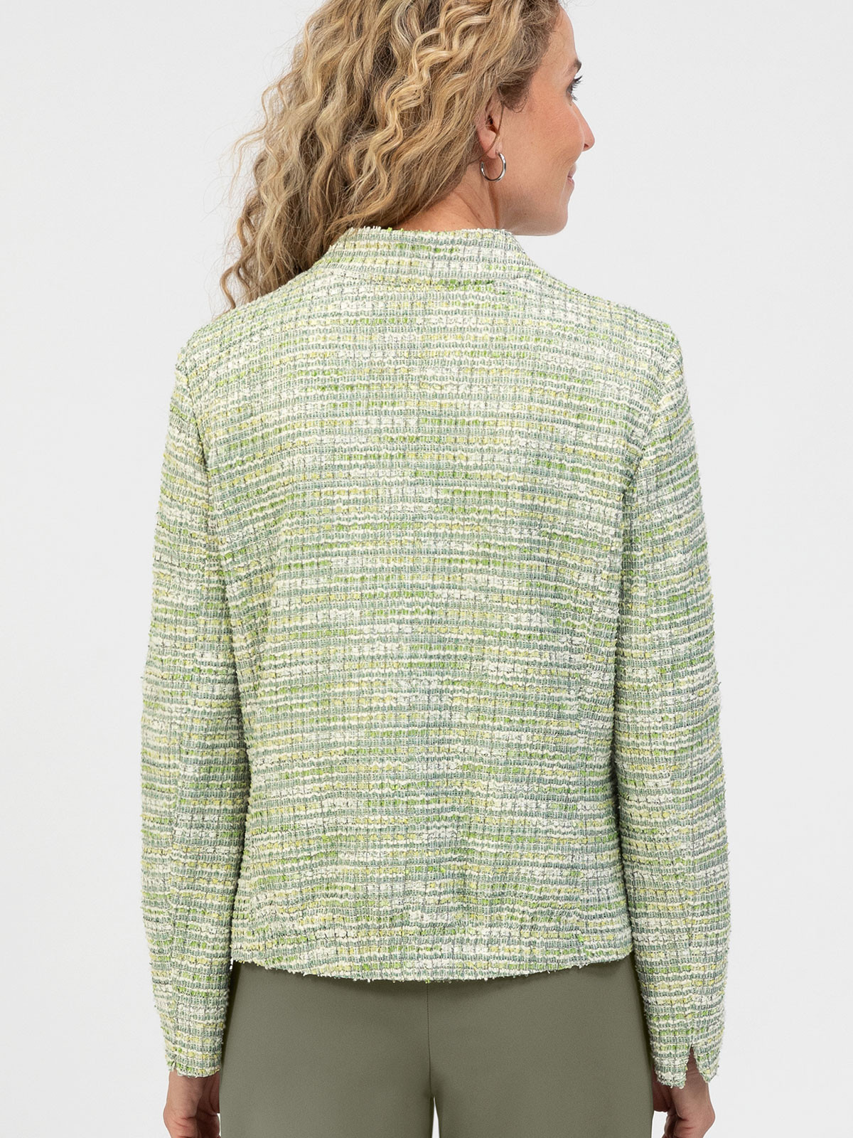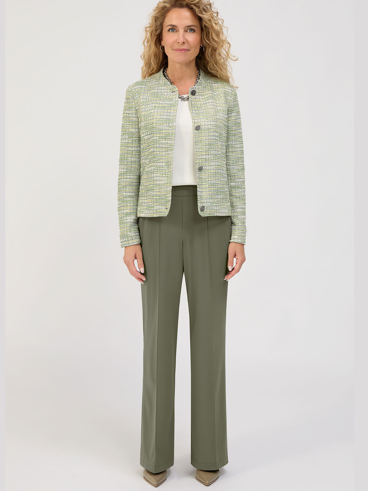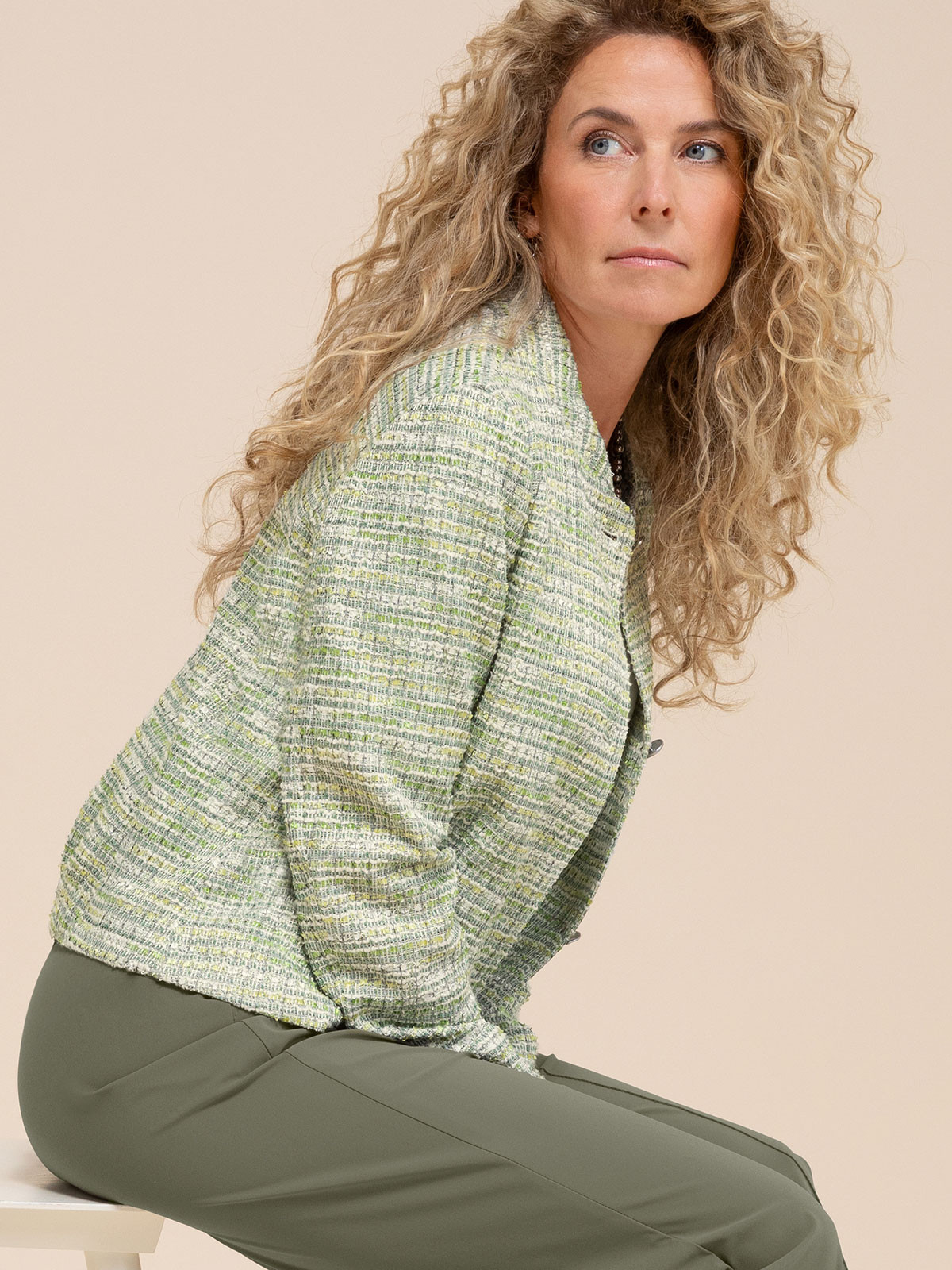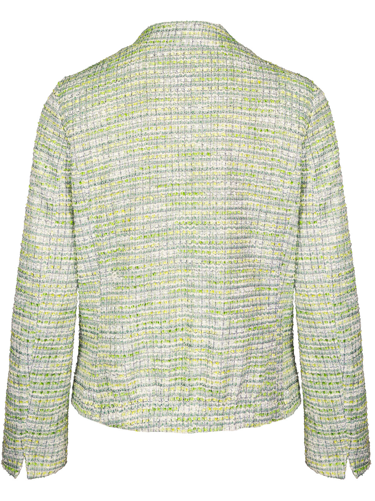 Boucléjacka från Bianca med dekorknappar i gråfärgad metall. Den är är rak i modellen och har två snedställda fickor och ärmen är hellång.
