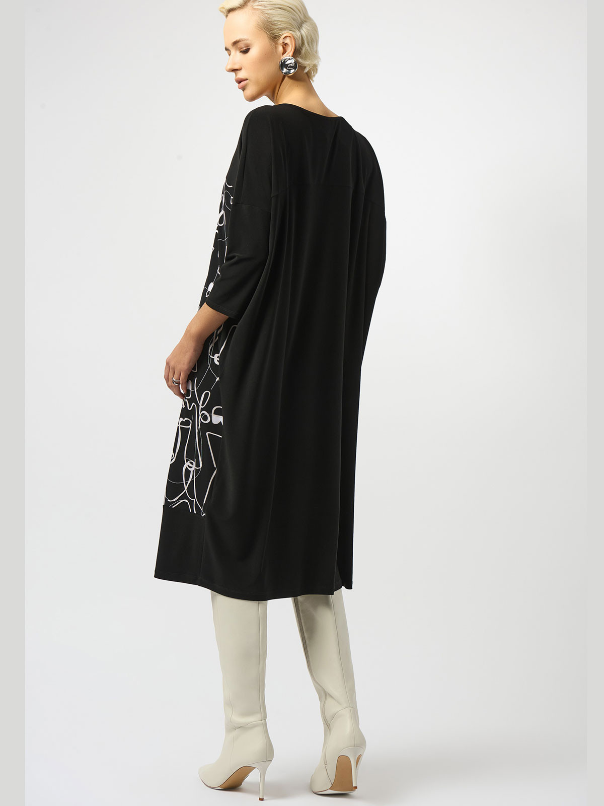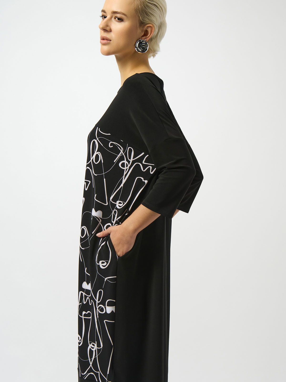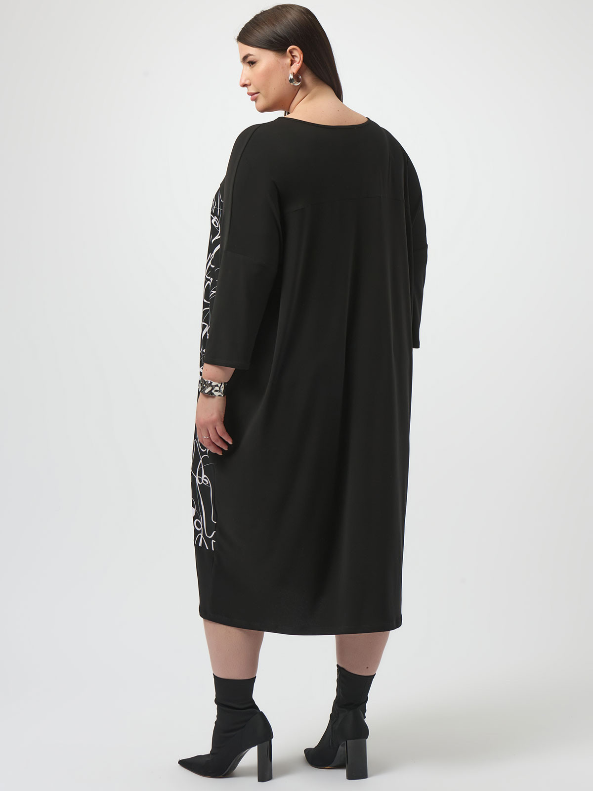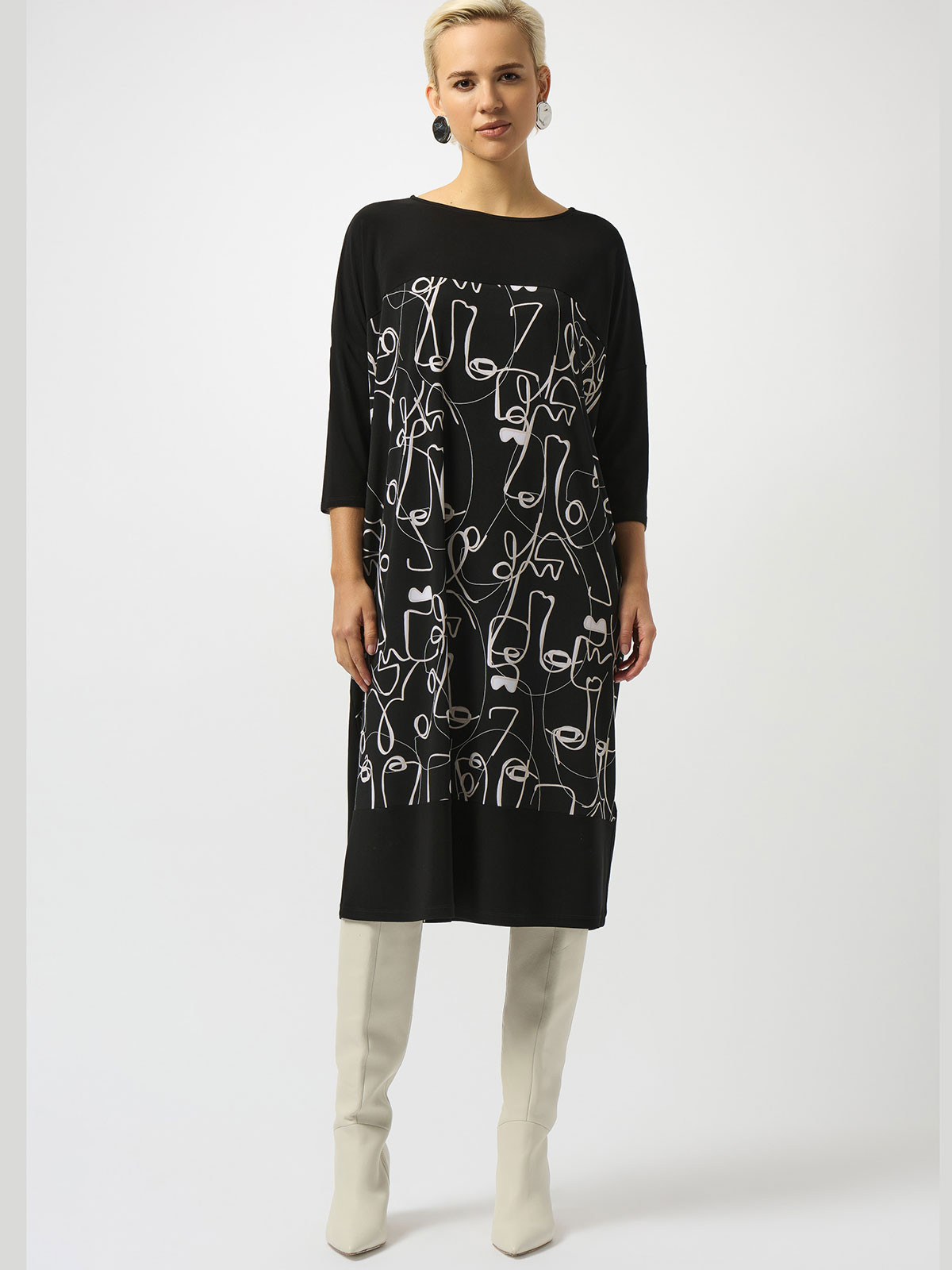 Trikåklänning svart med illustration från Joseph Ribkoff