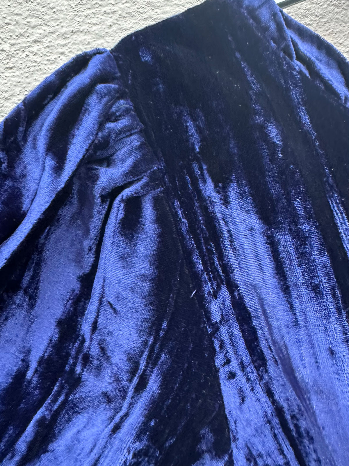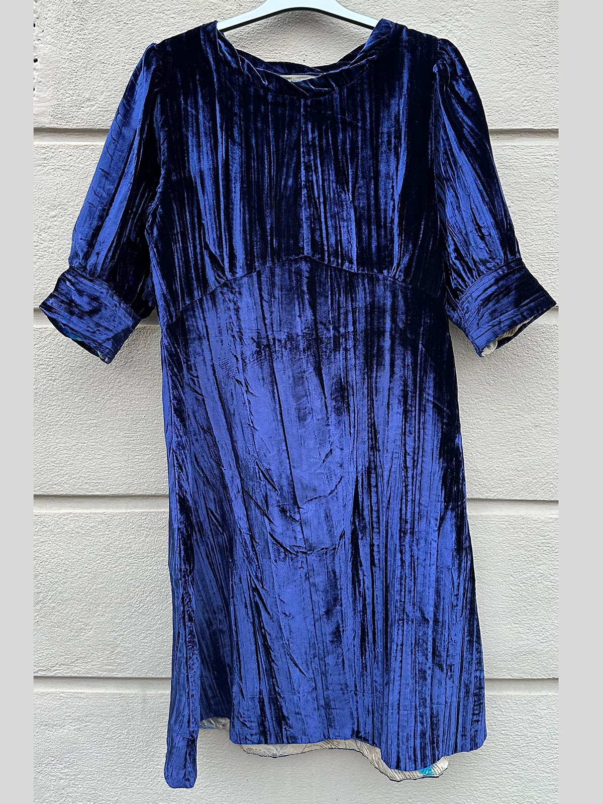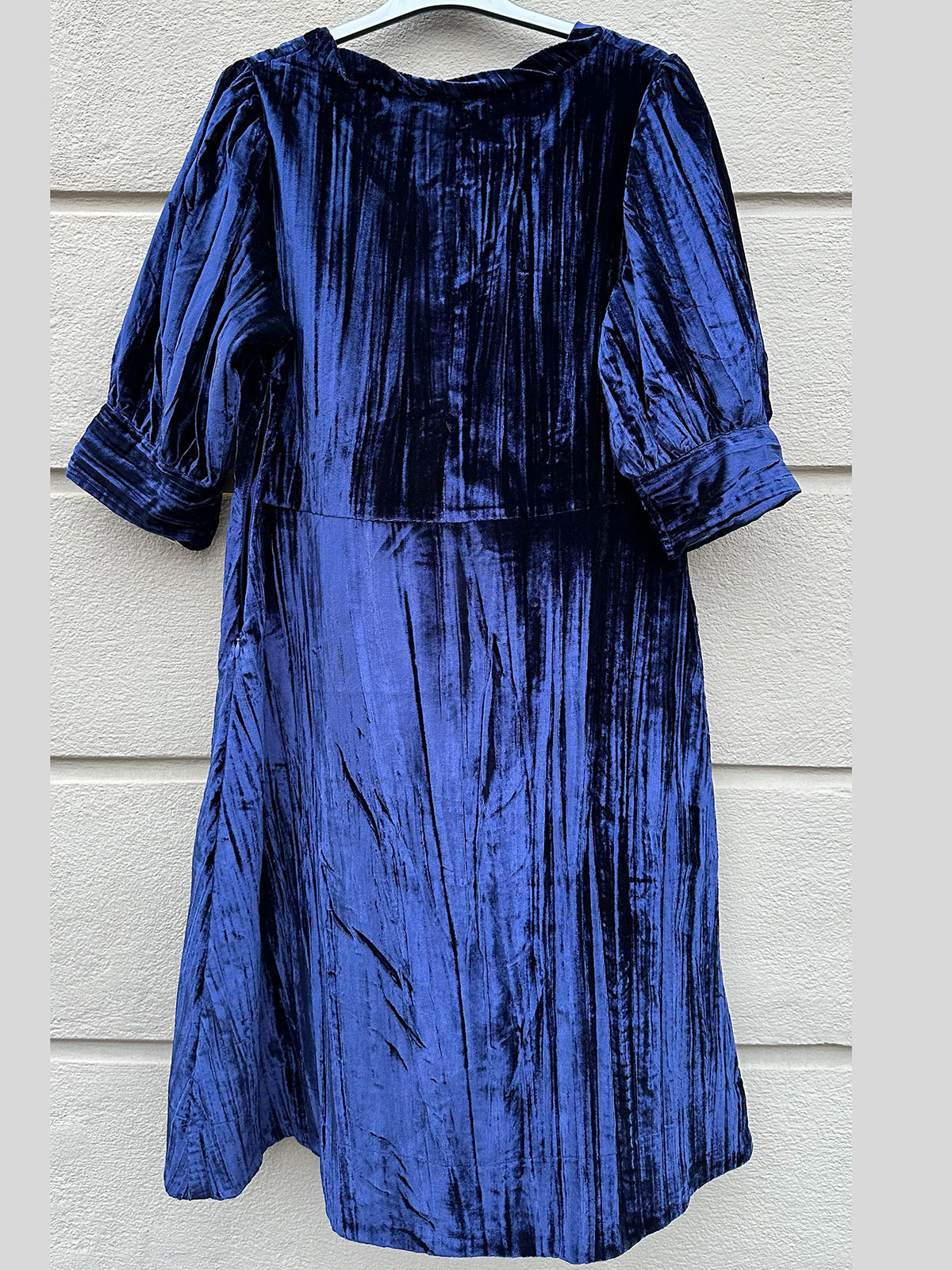 En ljuvligt härlig sammetsklänning från Gossip. Modellen är lätt A-linjeformad med tredjedelslång puffärm aom avslutas med en bred avsmalnande kant. Halsen är rundringad. Inga slitsar eller fickor.Stängs med dragkedja i sidan. Kontrasterande foder vid ärm och i nederkant.