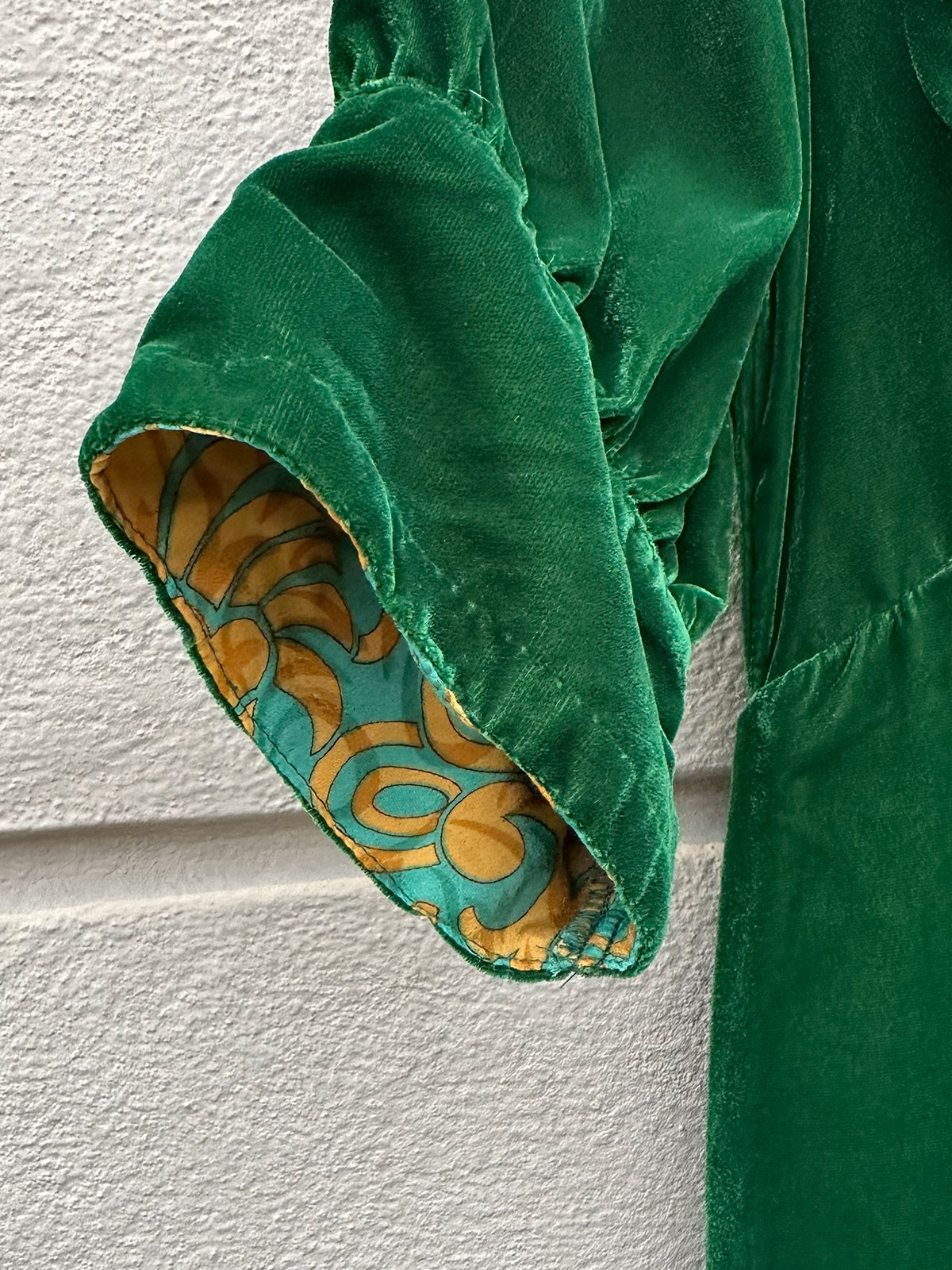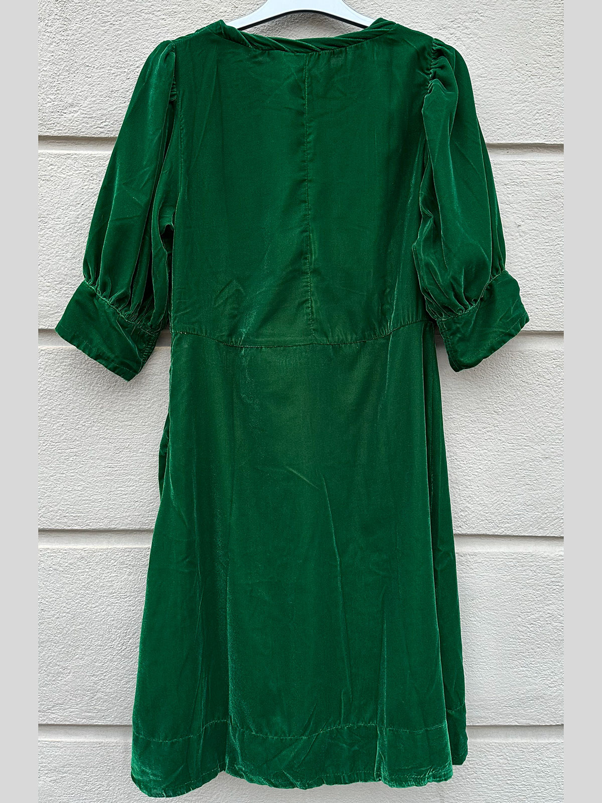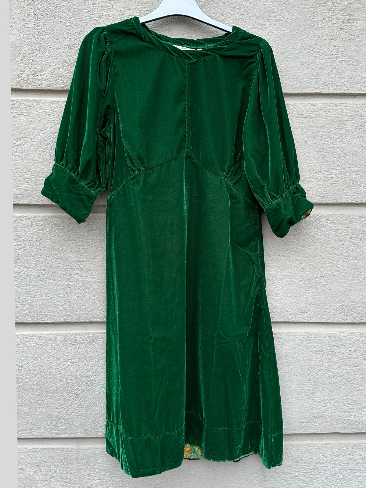 En ljuvligt härlig sammetsklänning från Gossip. Modellen är lätt A-linjeformad med halvlång puffärm aom avslutas med en bred avsmalnande kant. Halsen är rundringad. Inga slitsar eller fickor. Stängs med dragkedja i sidan. Kontrasterande foder vid ärm och i nederkant.