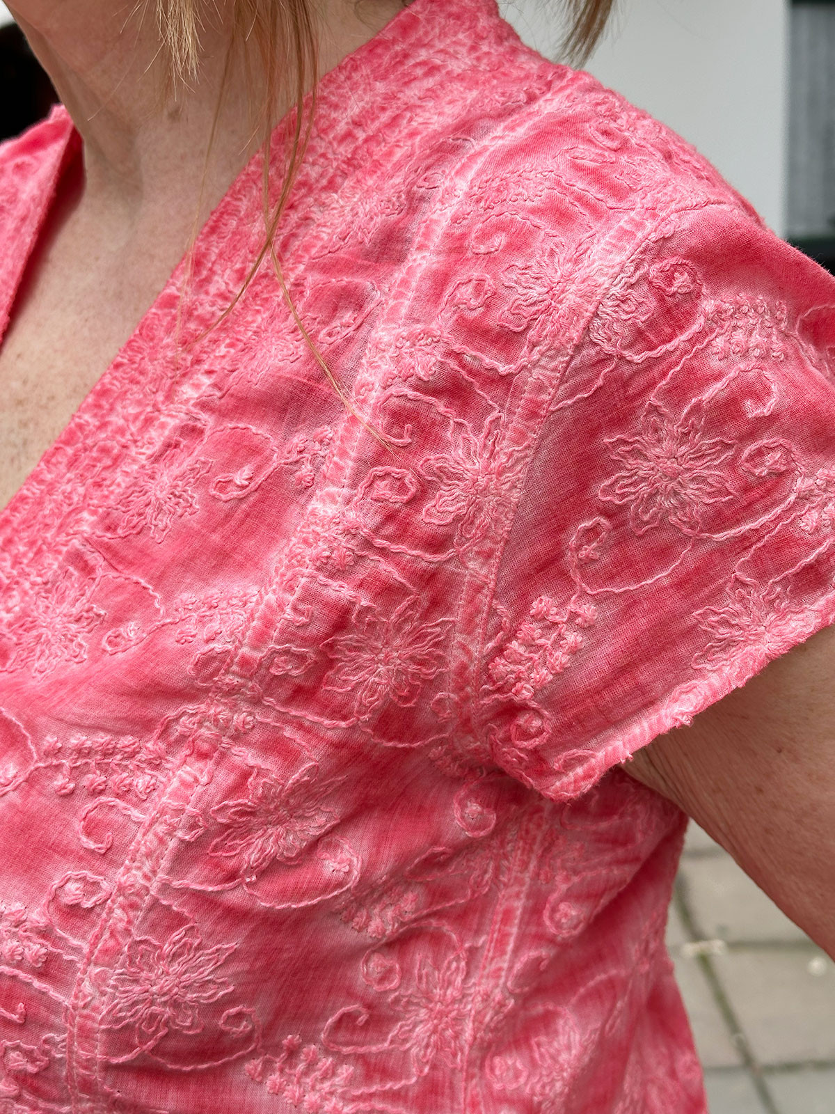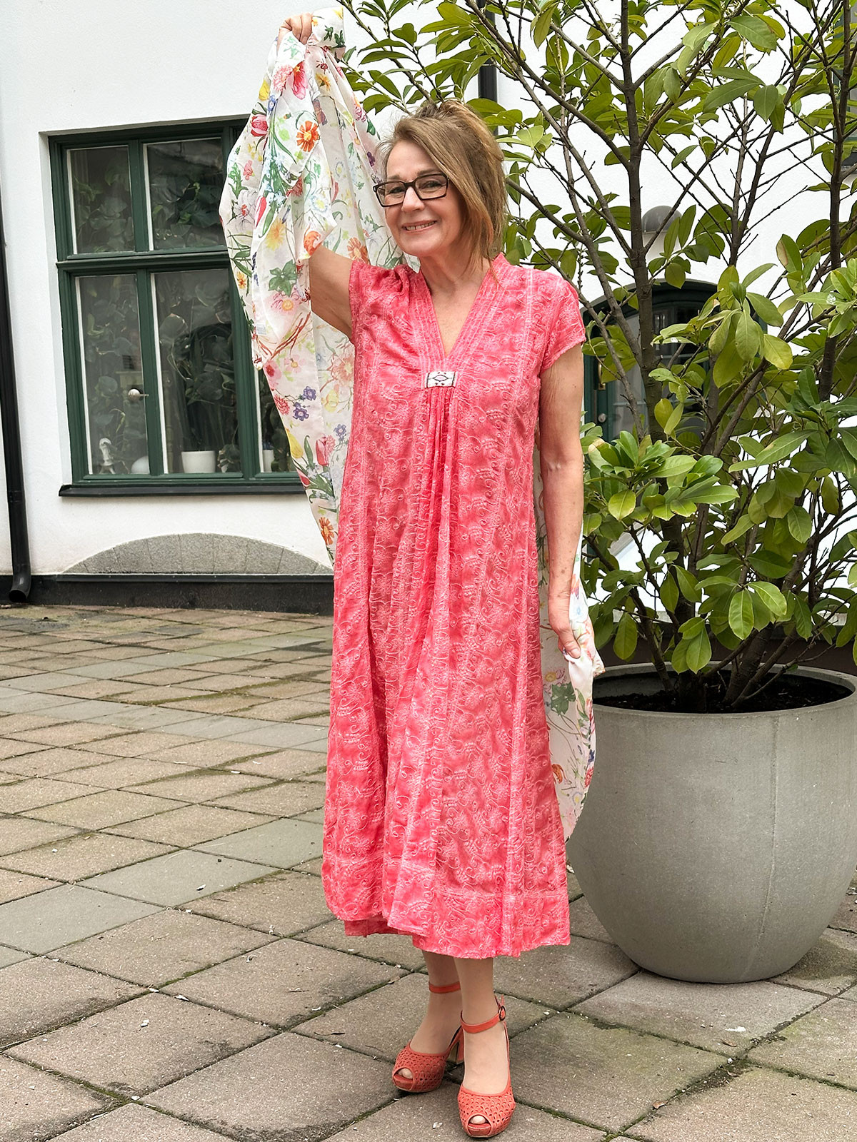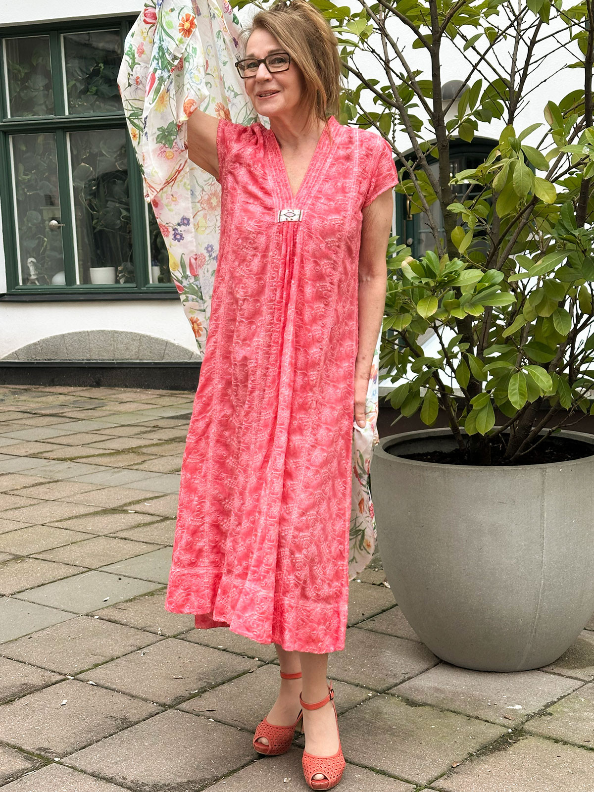 Klänning från Gossip i bomull, Daria är en A-ställd modell med v-ringning och kort ärm.