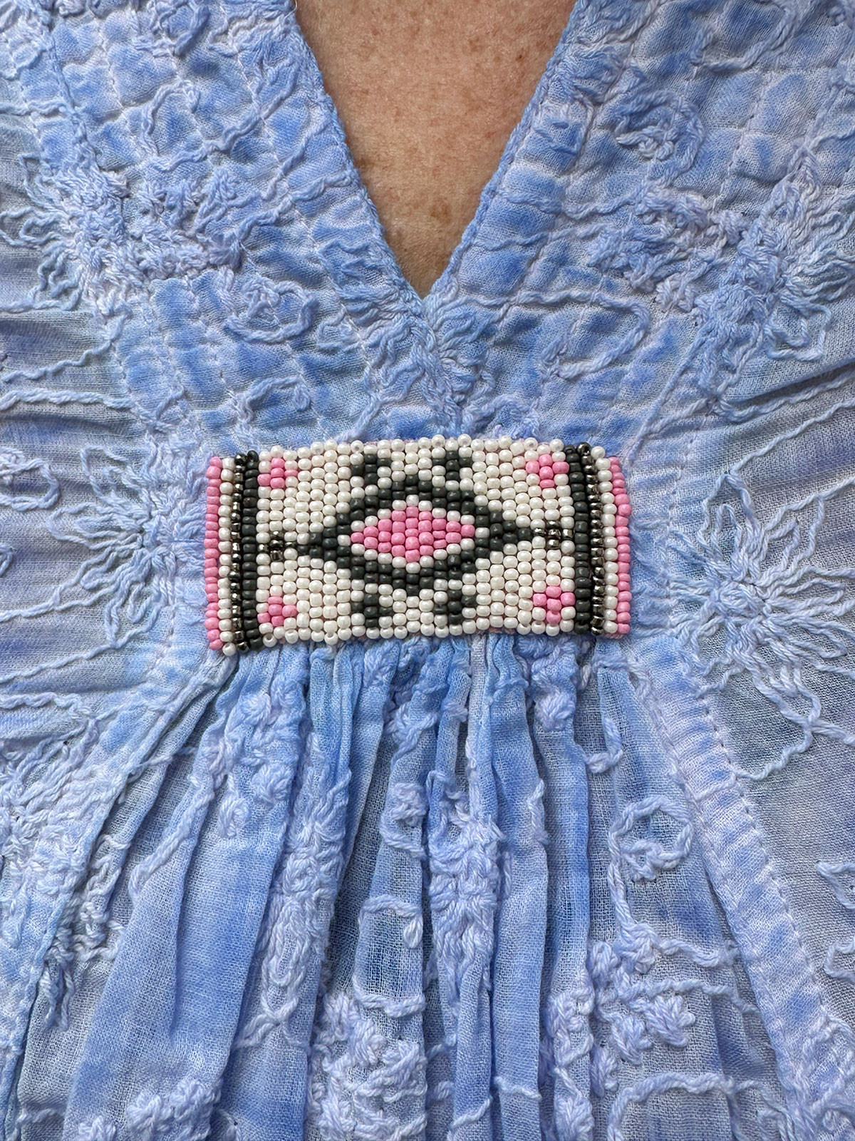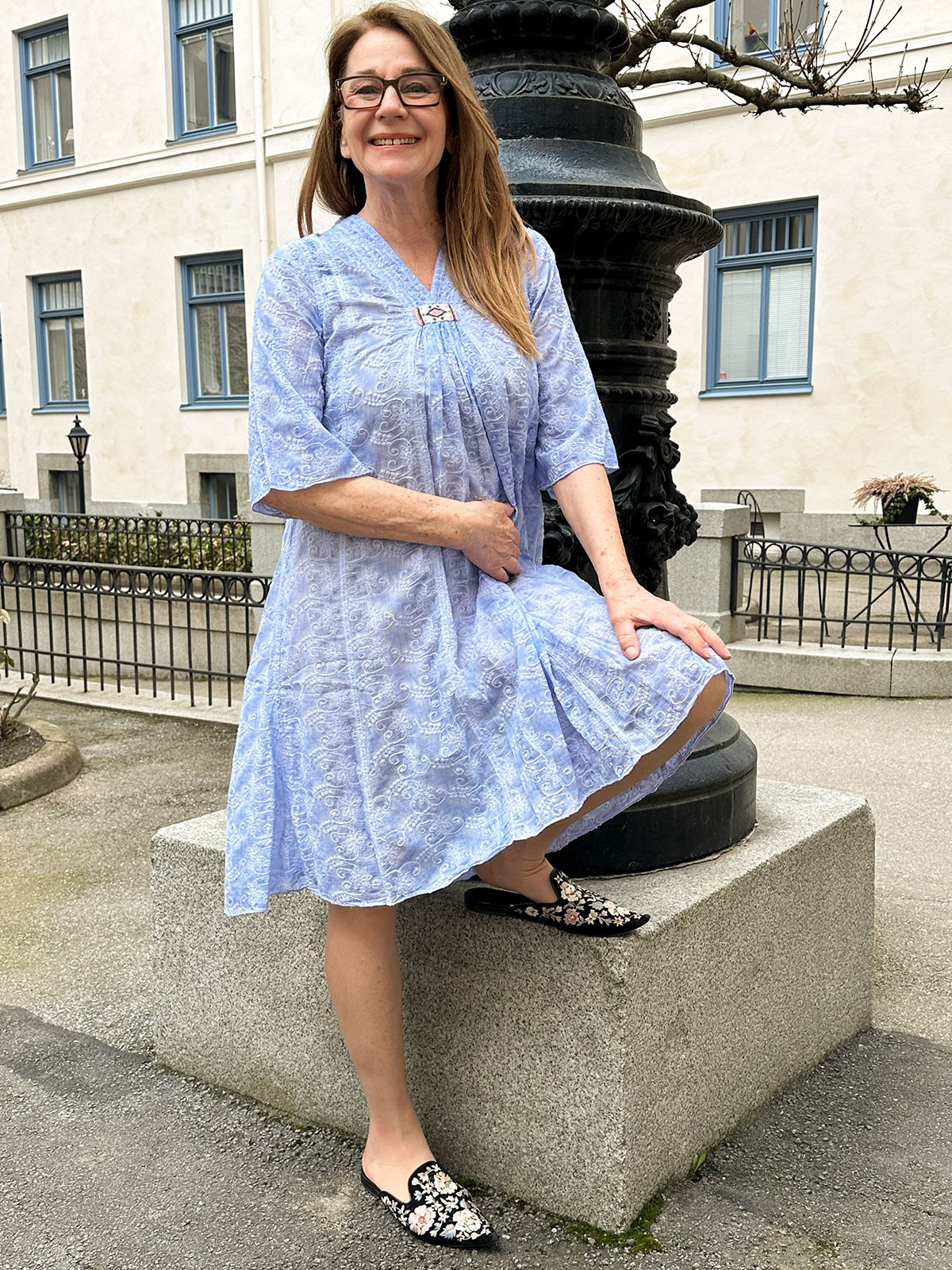 Som en dröm! En klassiker från Svenska Gossip! Broderad klänning Dies i 100% bomull. A-ställd modell med v-ringning och vid trekvartsärm. Här i märkets klassiska, himmelsblå färg!