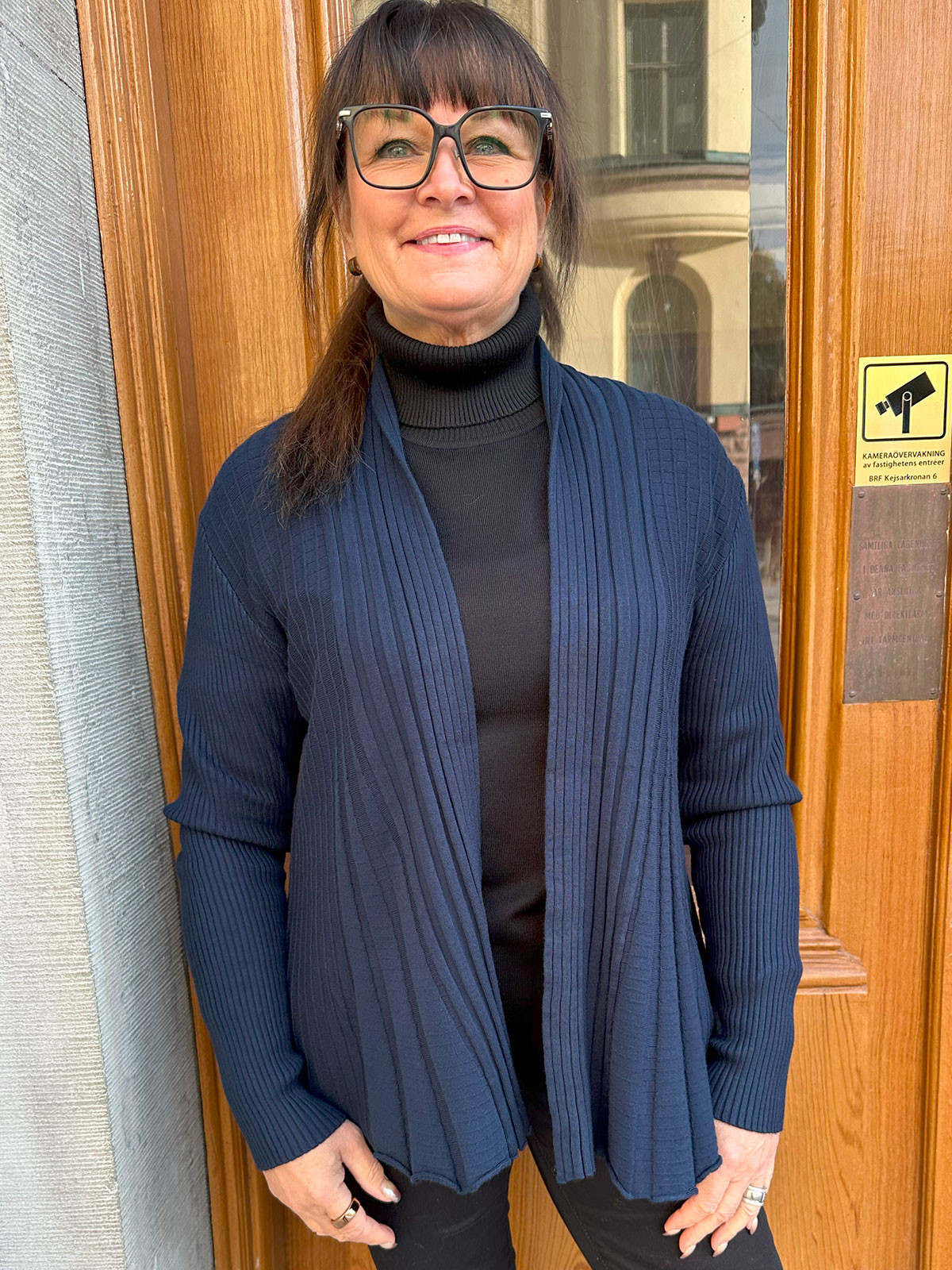 En användbar kofta utan knäppning i bra mellanlängd från FREEQUENT.