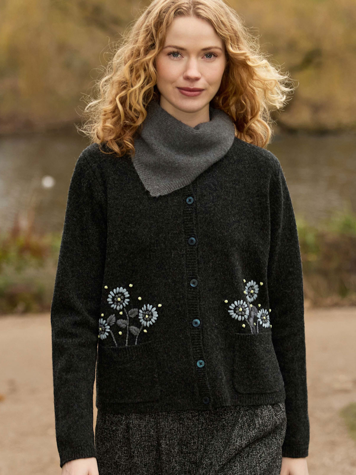 Ullkofta med broderi Florence mörkgrå från Mansted