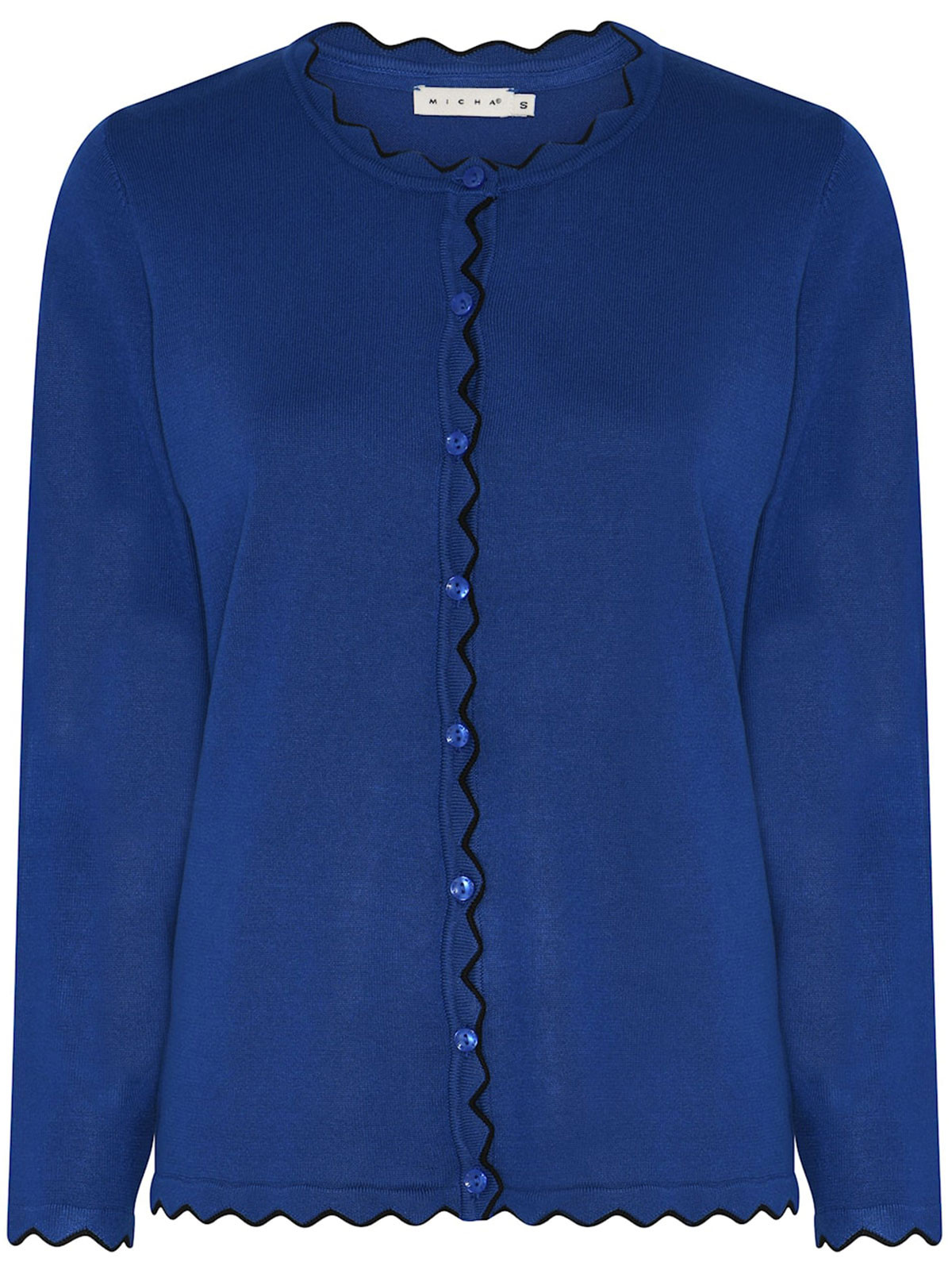 Finstickad kofta från Micha i skön viskosblandning med en vågdetalj i kontrasterande färg längs krage, ärmslut och nederkant.