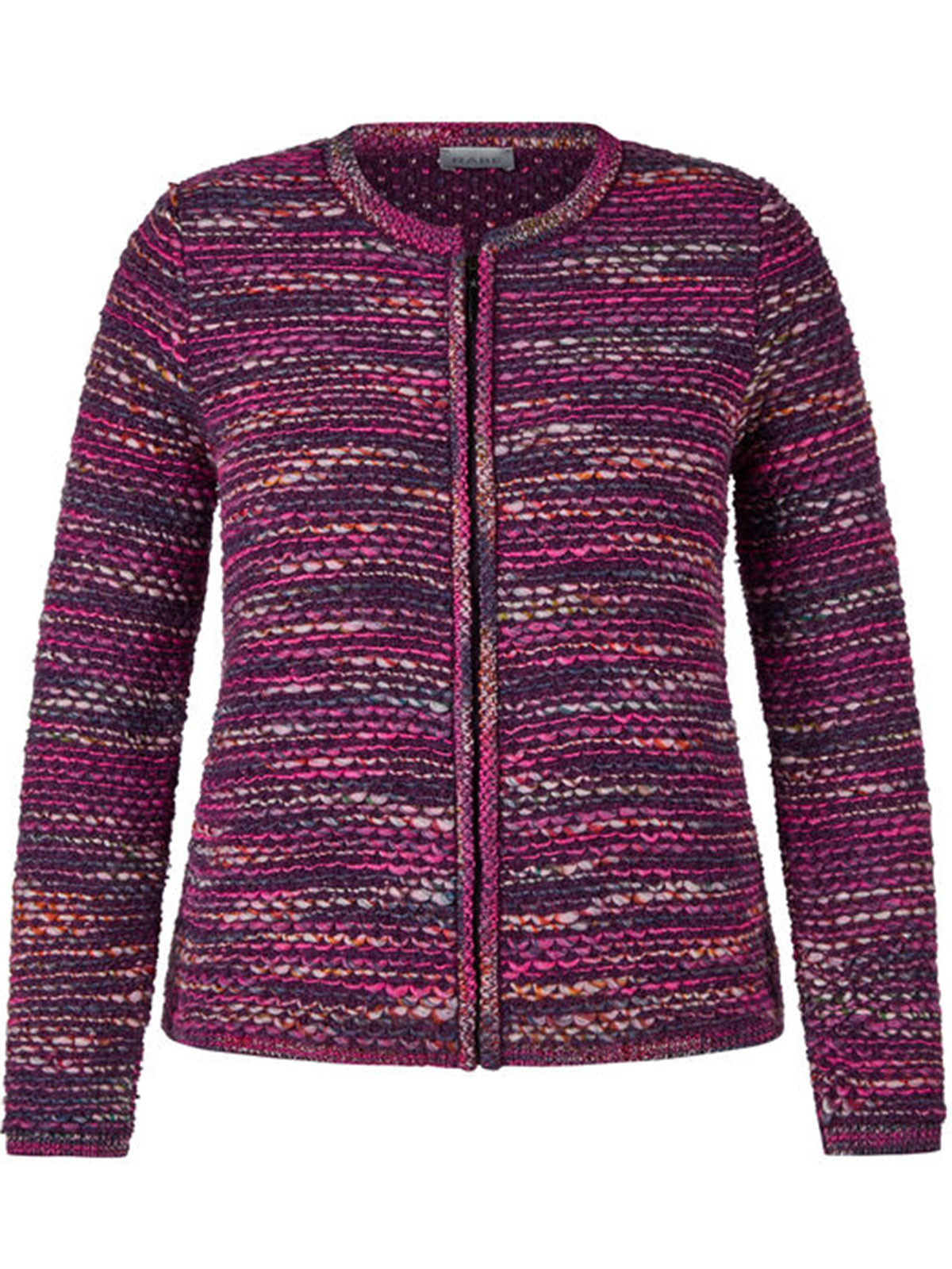 Kraftigt stickad jacka vinröd melerad från Rabe