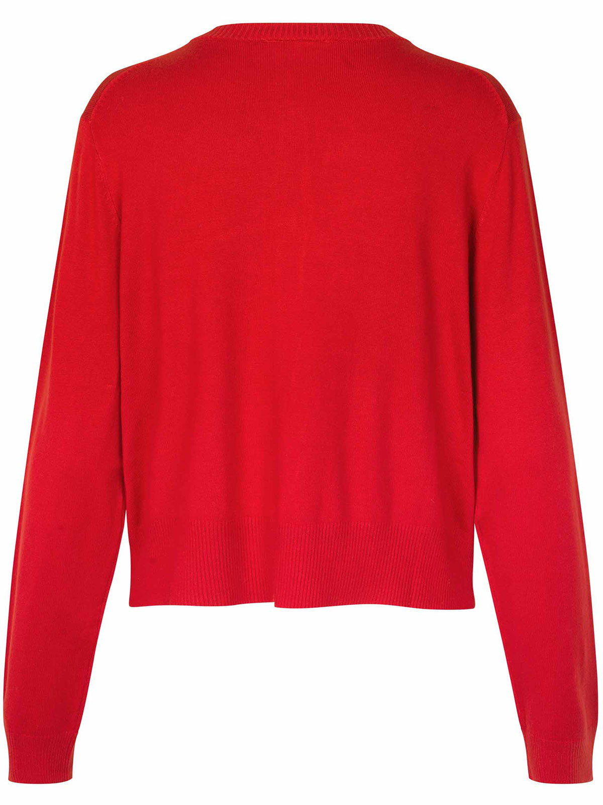 Vacker kofta från Masai i viskosmix. Klassisk modell med rundad hals, hellång ärm och muddar vid avslut. Det som gör den kofta till något extra är de glittriga strassknapparna.