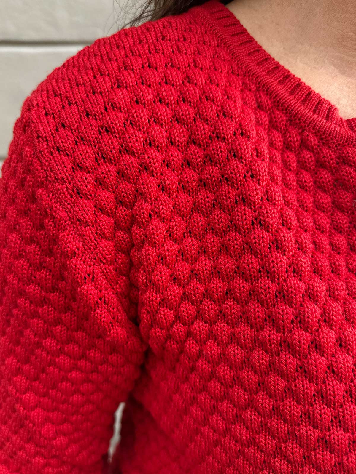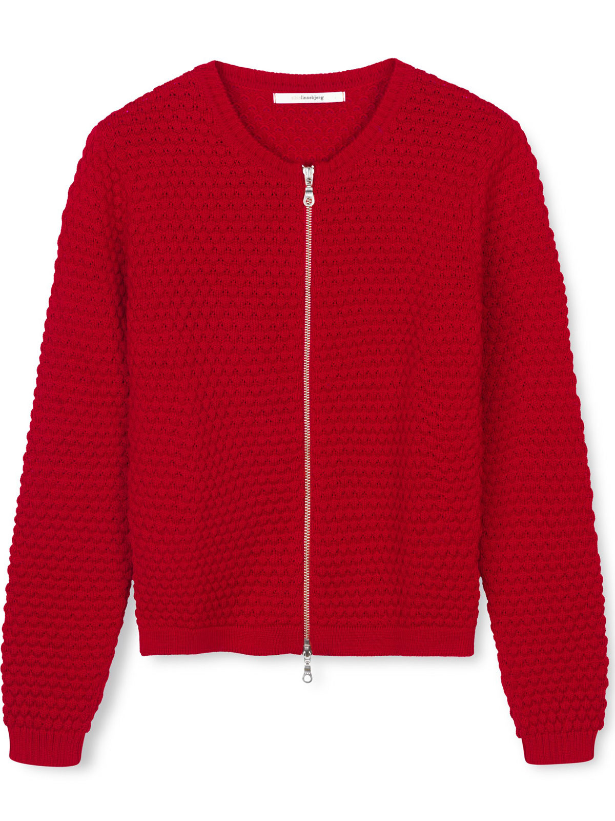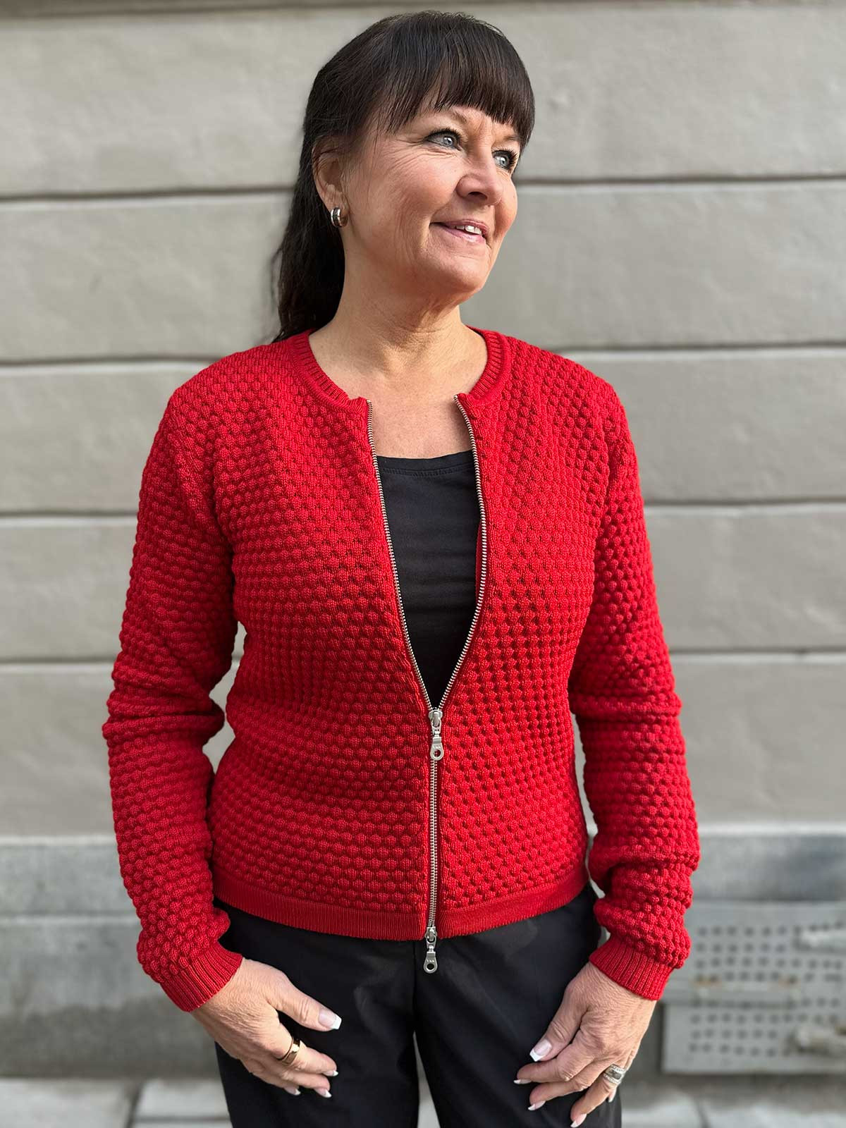 Mönsterstickad kofta från SibinLinnebjerg i en skön merinoullsmix. Modellen är rak, har rundstickad hals och hellång ärm. Koftan stängs med en lite tuffare, silverfärgad dragkedja med fina spännen.