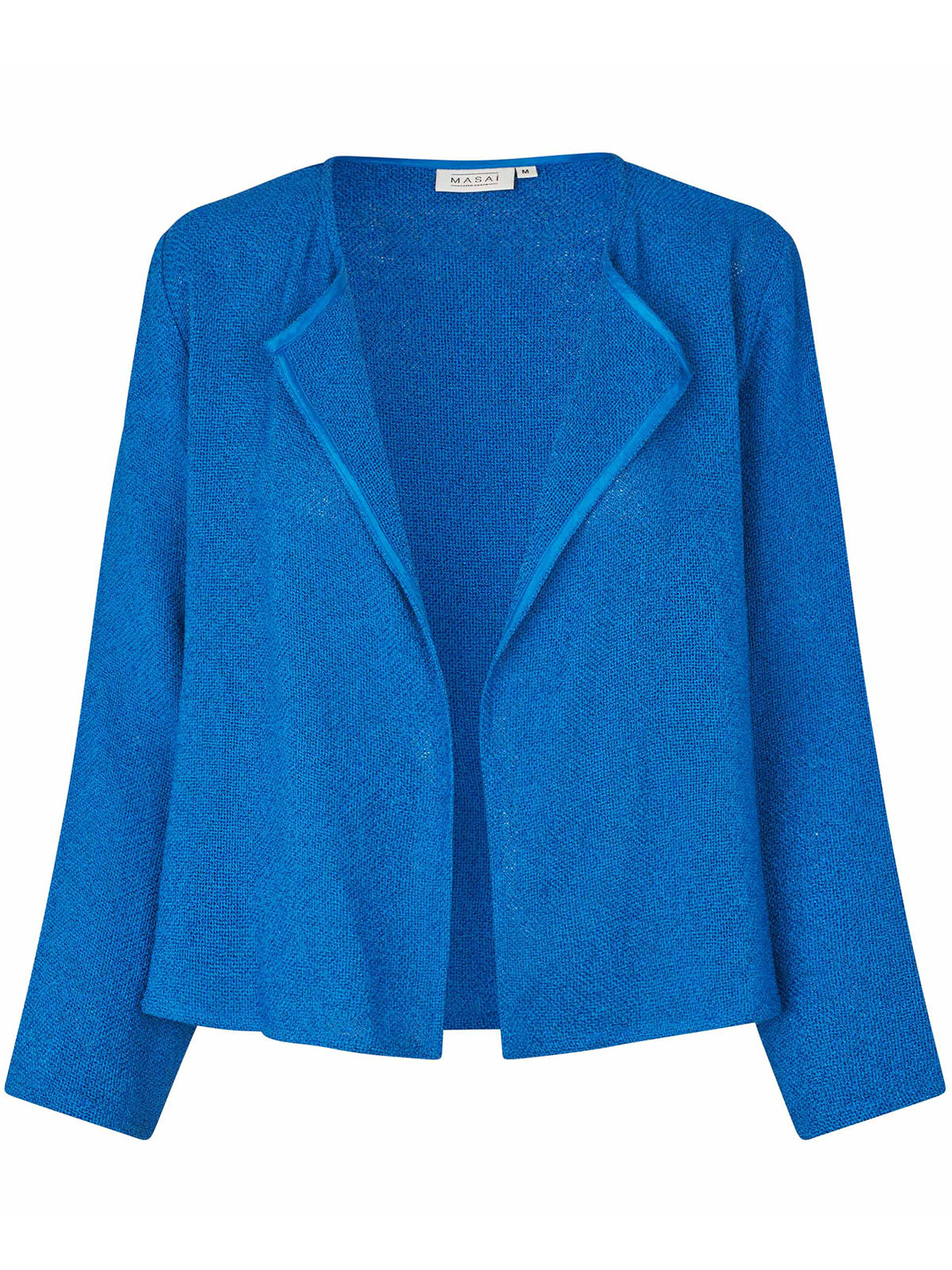 Stickad kort kofta/jacka från Masai. Enkel och lättburen modell utan knäppning, A-linje formad. Vissa klassiker återkommer säsong efter säsong och den här vackra boucléjackan är en av dem. Den tidlösa och karaktärsfulla bouclén är perfekt för att föra in textur i din outfit. Jackan är designad med långa ärmar och ett enkelt uttryck som passar till allt.