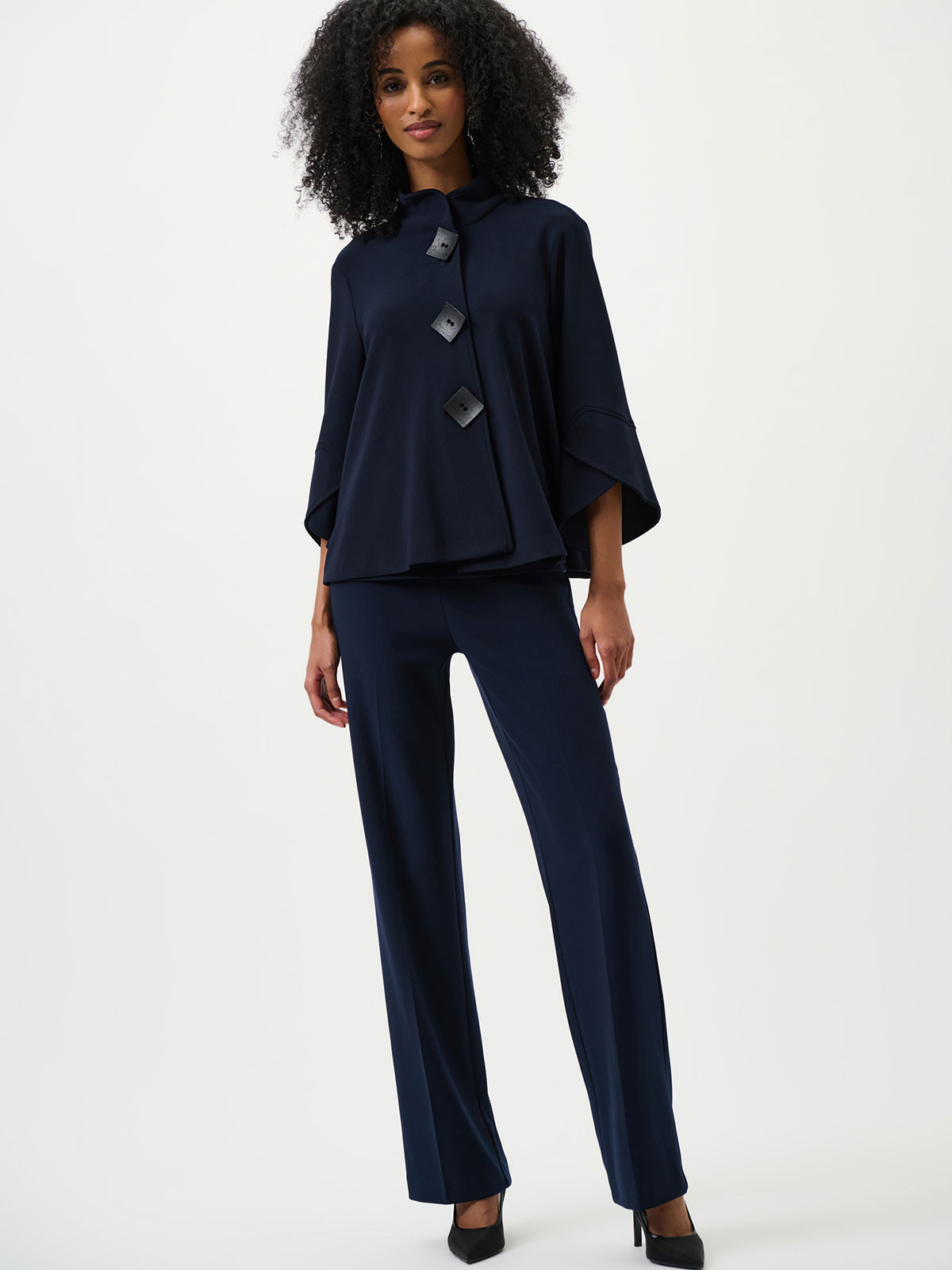 Snygg byxa med tungt och fint fall från Joseph Ribkoff. Underbar kvalitet som formar sig efter figuren. Stretchig och bekväm. Lätt dra-på modell med hög midja och bred elastisk linning i midjan. Den perfekta finbyxan som är mycket skön att bära.