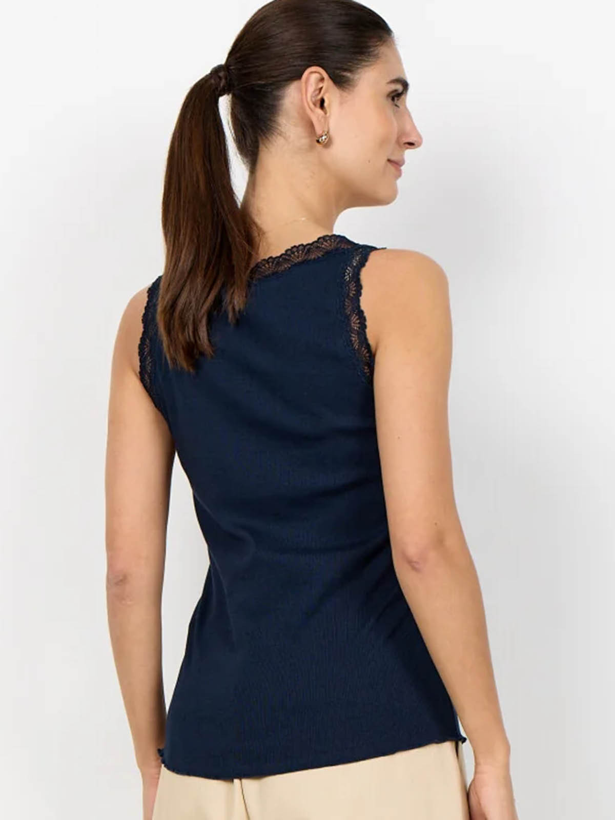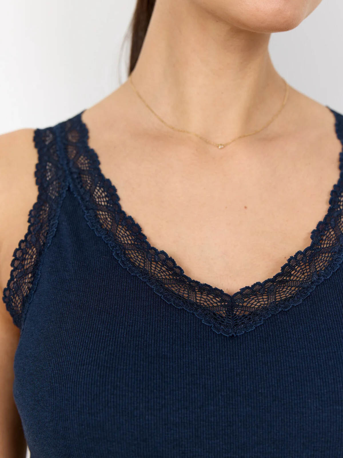Ribbat linne spetskant Chanilla marin från SoyaConcept