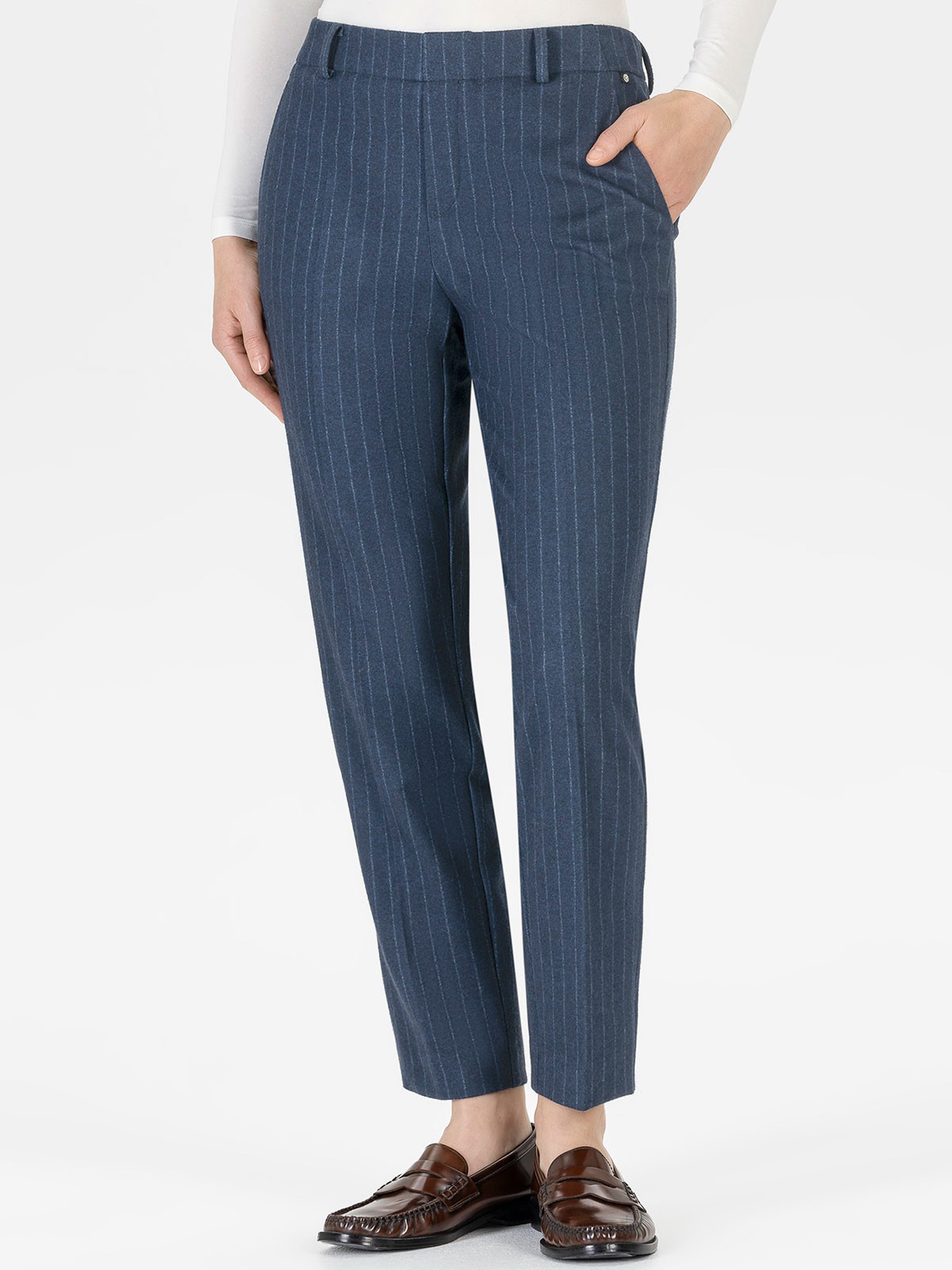 Elegant mirakelbyxa från Stehmann i "flanellfiltad" kvalitet. Vem har sagt att mirakelbyxor inte kan vara eleganta och ha linning med hällor? Denna nyhet från Stehmann blandar de bästa av världar där du får en elegant, och mera klädd, byxa utan att tumma på den supersköna känslan ett par mirakelbyxor ger. Modellen Fluor har ett rakt ben och snedställda fickor fram. Linning och gylf är endast dekor då det gömmer sig en bred resår i överkant. Precis som det ska göra på ett par klassiska mirakelbyxor. Baktill finns två passpoalfickor.