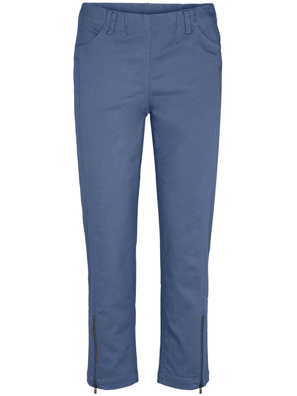Mirakelbyxa modell Piper i 7/8-dels längd från LauRie. En klassisk och skön bomullsbyxa med stretch som formar sig fint efter figuren. Resår i linningen och fickor fram och baktill. Hällor för skärp och dekorativ dragkedja vid benslutet.