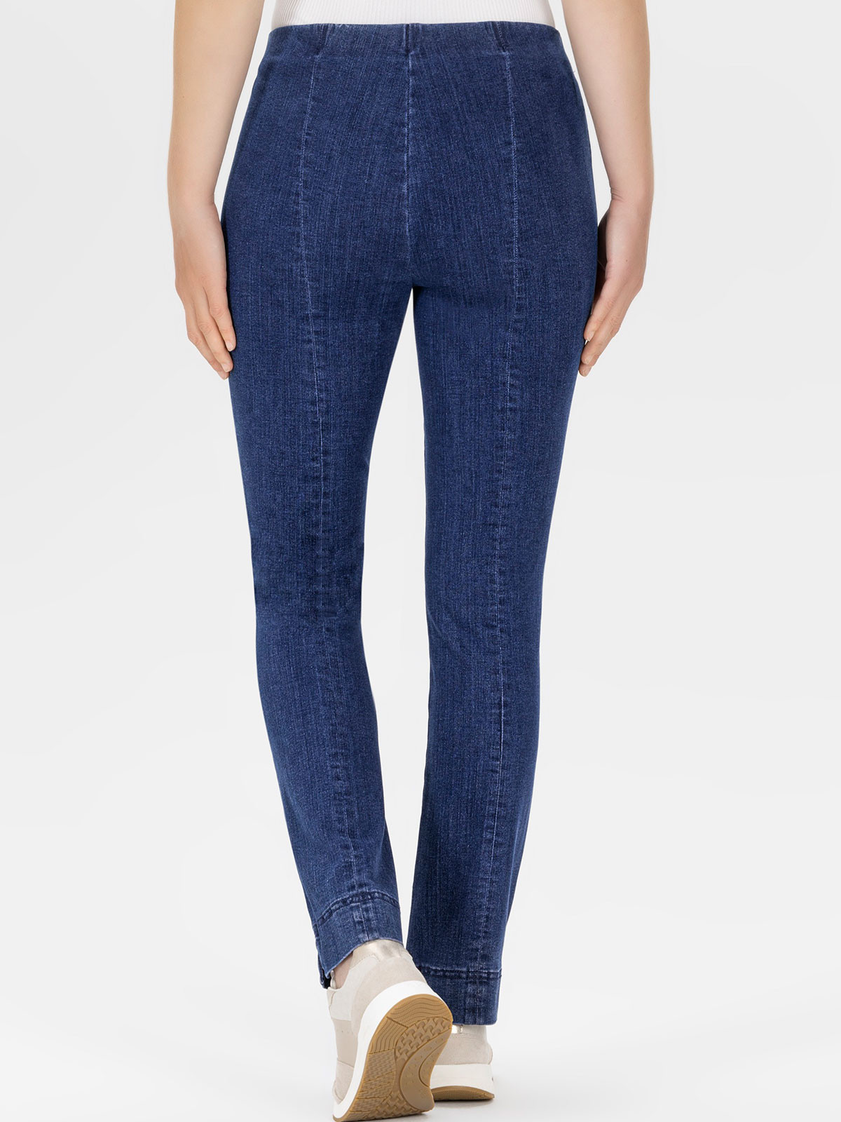Klassisk mirakelbyxa från Stehmann i stretchigt denimtyg. Dold resår i midjan och sprund på benslutet. Skön och lättburen byxa i regular, rak fit. Byxan passar alla passformer och är mjuk och behaglig mot huden. Utan fickor och hällor.