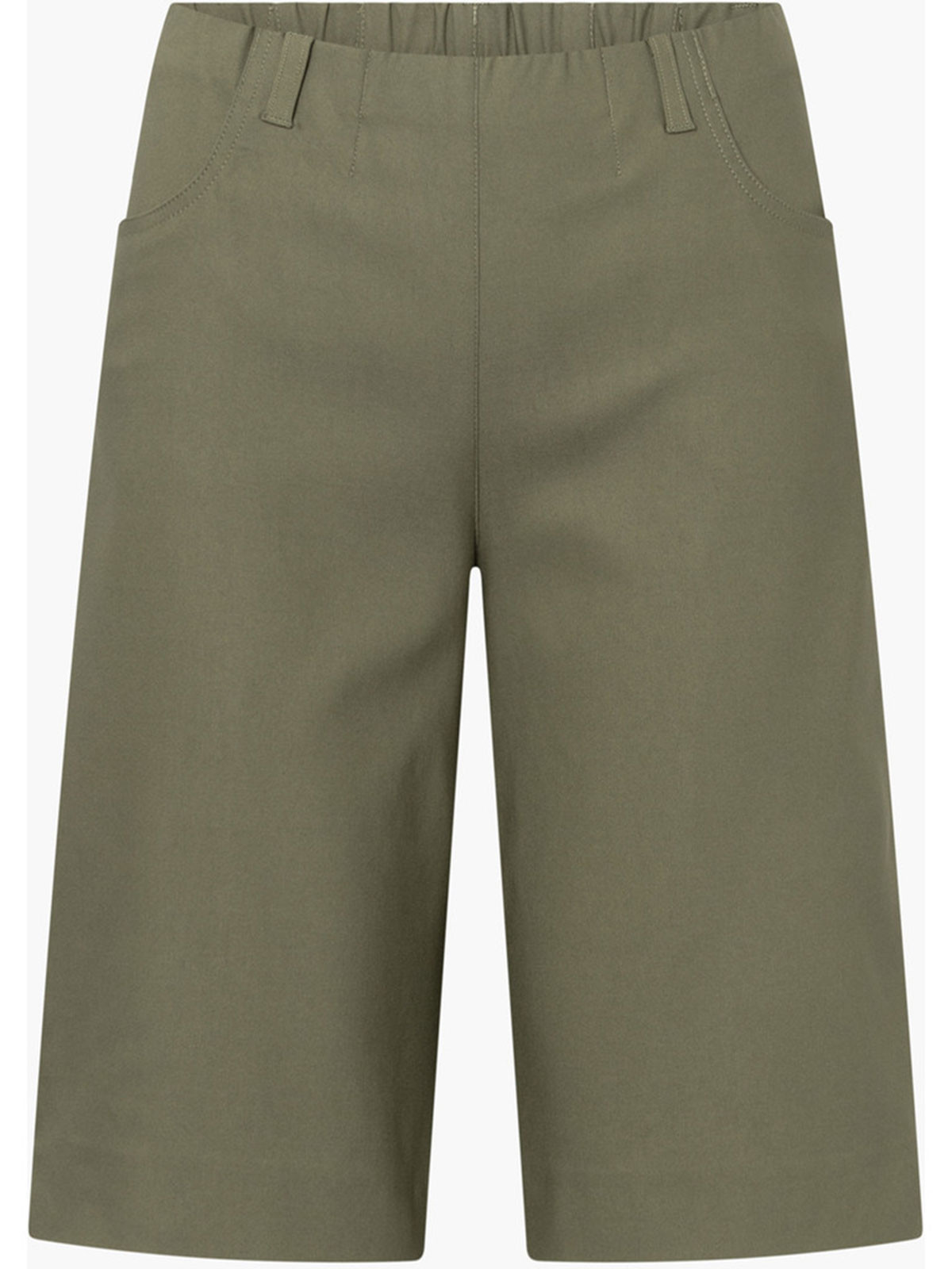 Vida shorts i skönt, tunnt viskostyg med resårlinning. Modellen Donna från Laurie har framfickor och bälteshällor. Rakt ben som inte sitter åt. Snygg grön färg.