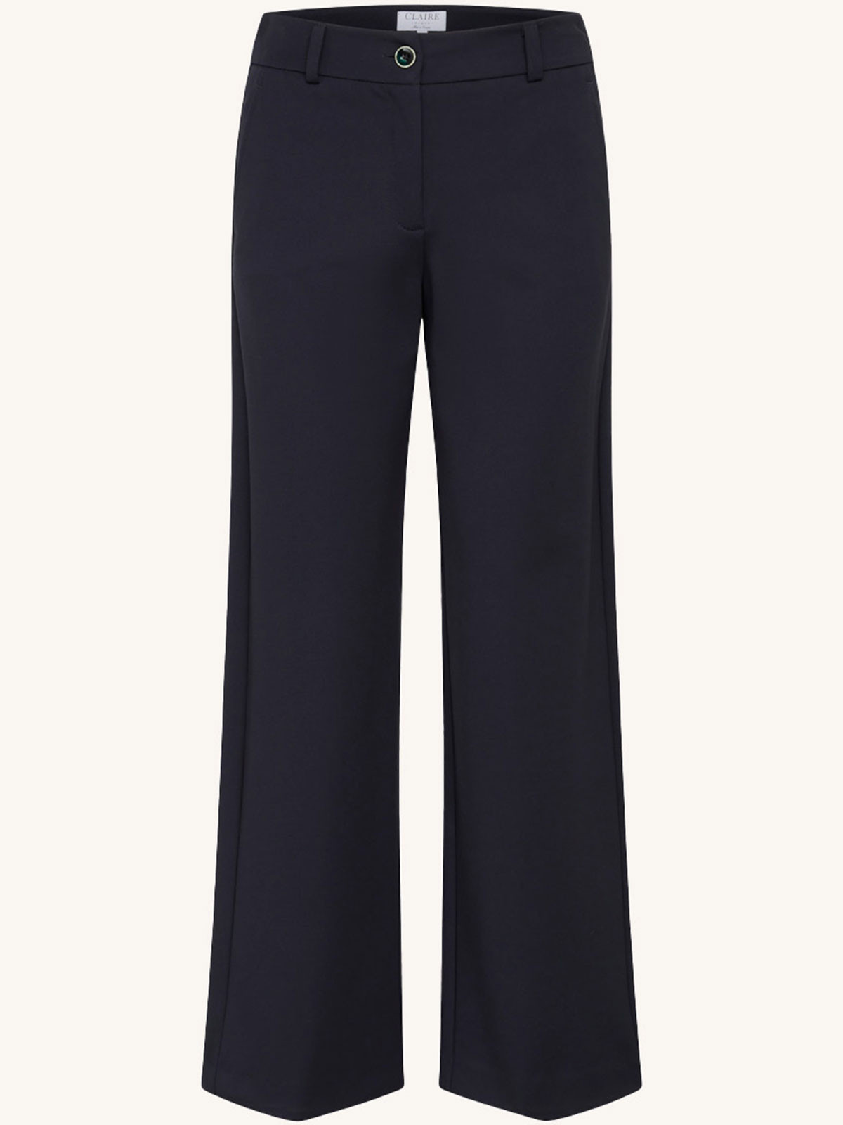 Snygg trikåbyxa från Claire med djup färg och stretchigt, skrynkelfritt tyg. Modellen är rak och har fast linning med hällor, knapp och gylf. Snedställda fickor på sidorna och en passpoalficka på höger baksida. En perfekt kombination av snygg kostymbyxa i superskön trikå.