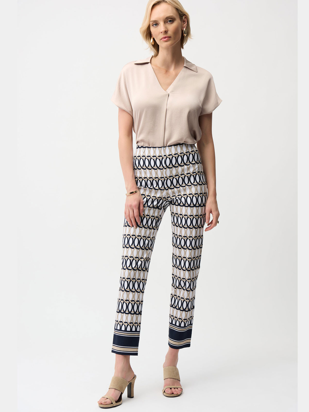 Stretchig byxa cirklar marin/sand/vit från Joseph Ribkoff
