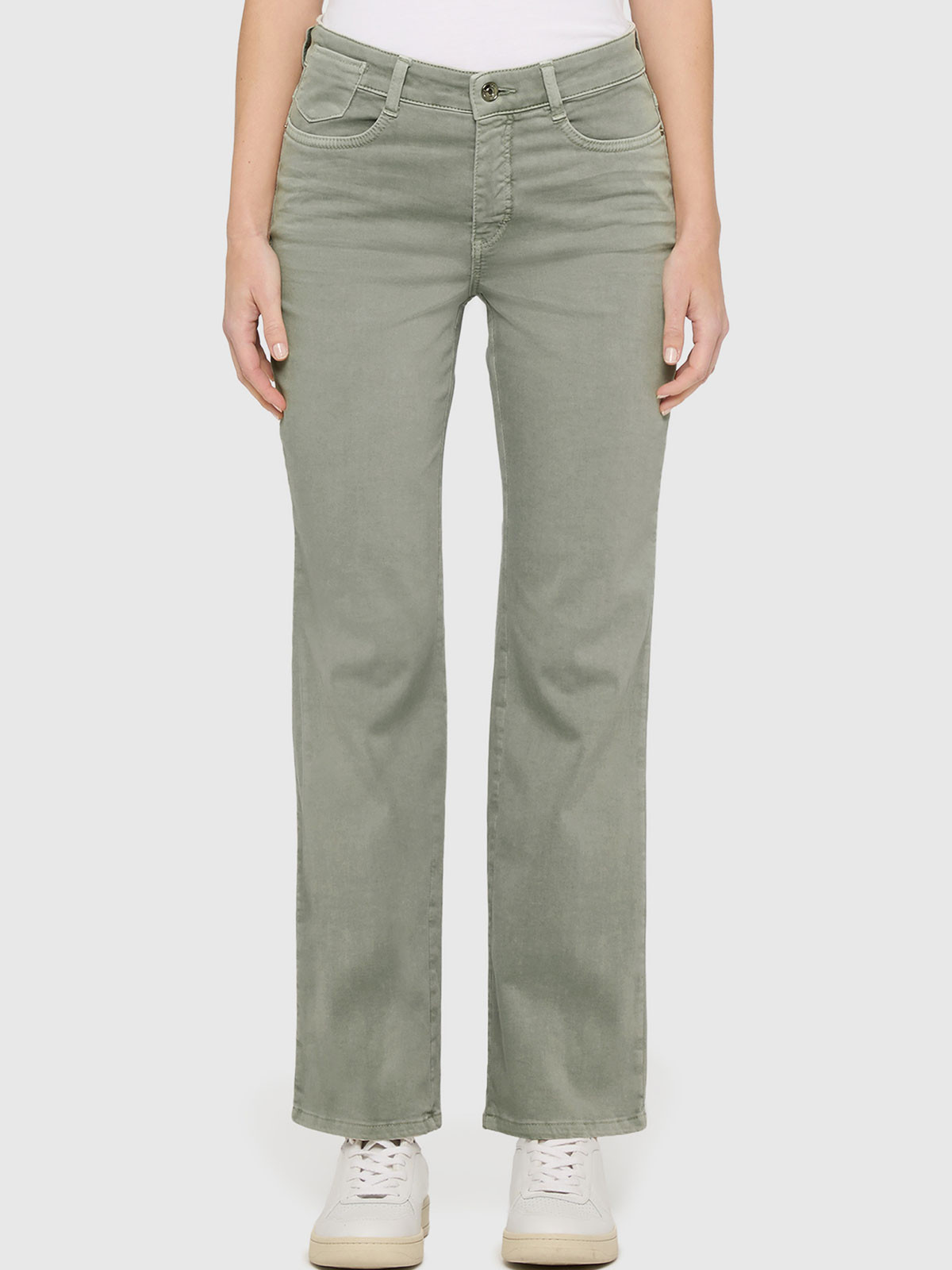 Snygga jeans i en fint "dimmad" grön färg från MAC, modell Laura.