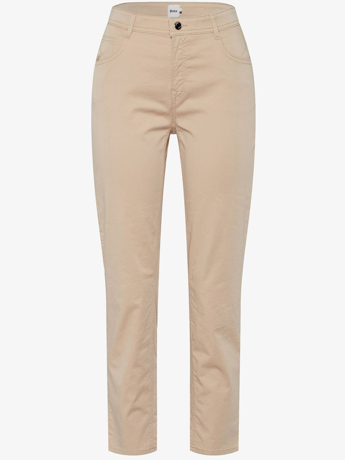 Modellen Mary från Brax med "Ultra Light Supreme" har en extra skön och sval bomullskvalitet. Denna byxa har rakt, smalt ben i en 7/8-dels läng. Modellen har en nättare passform som går upp bra i midjan. Femficksmodell med gylf och hällor. Fin och sval bomullskvalitet!