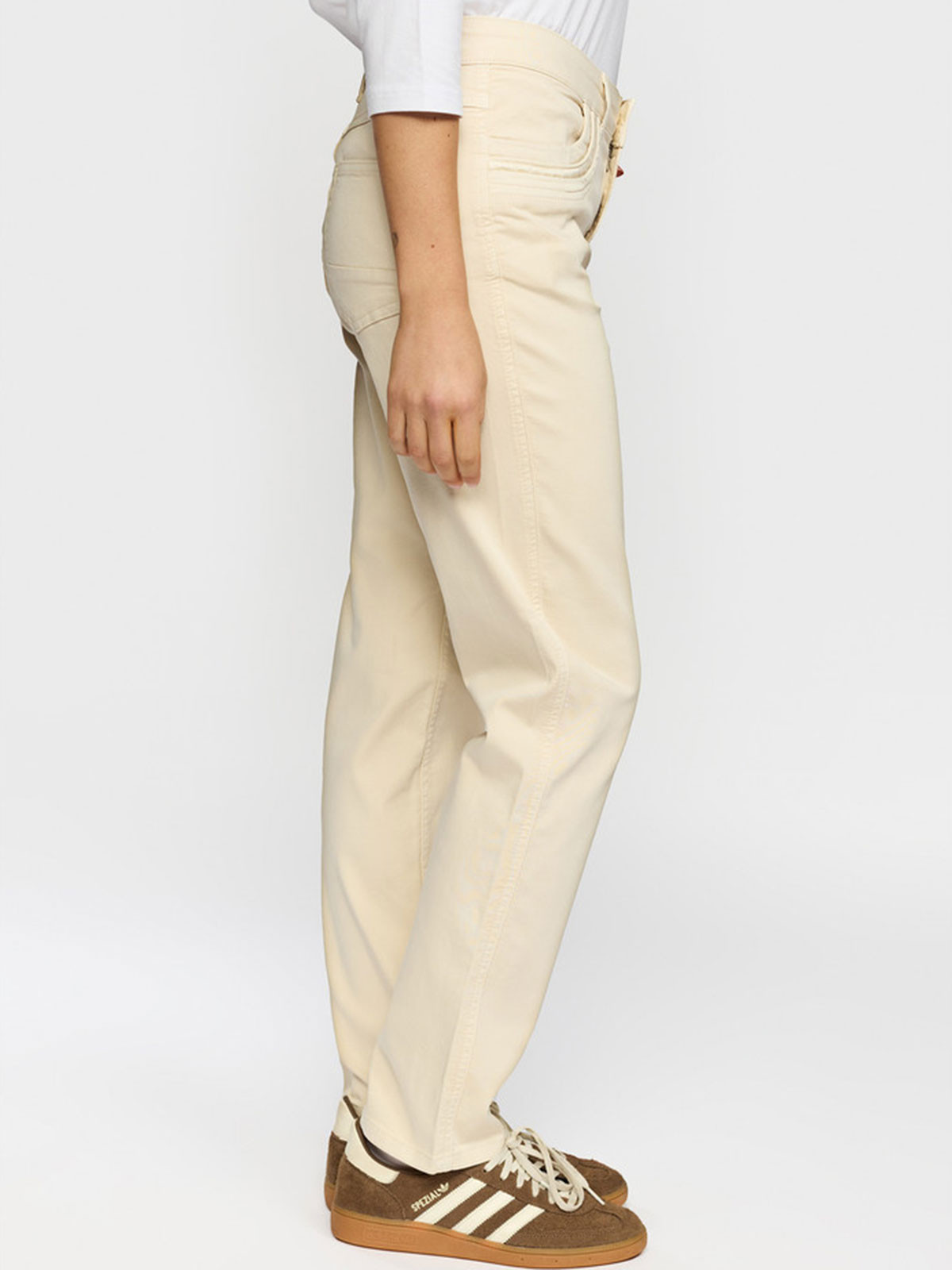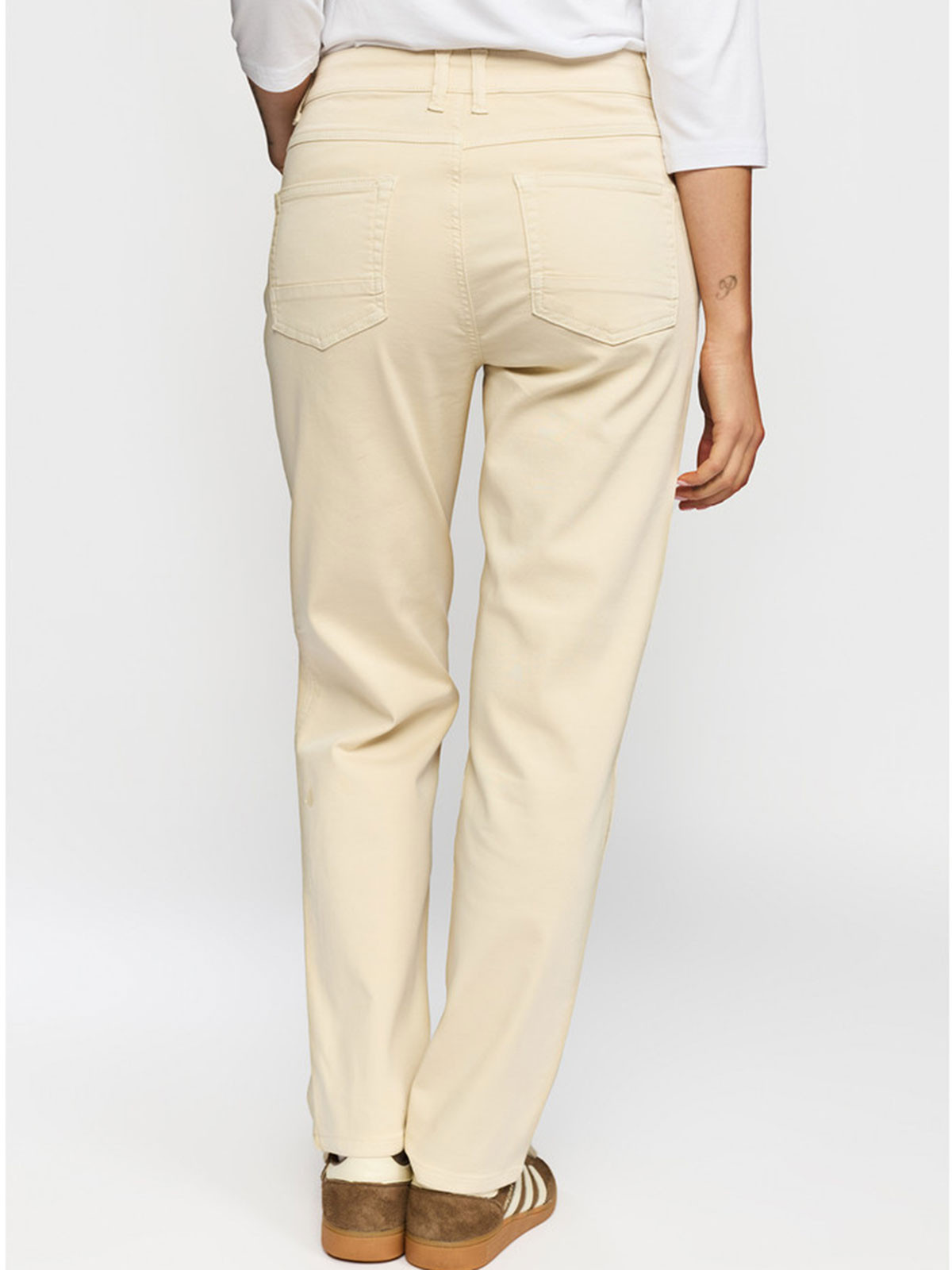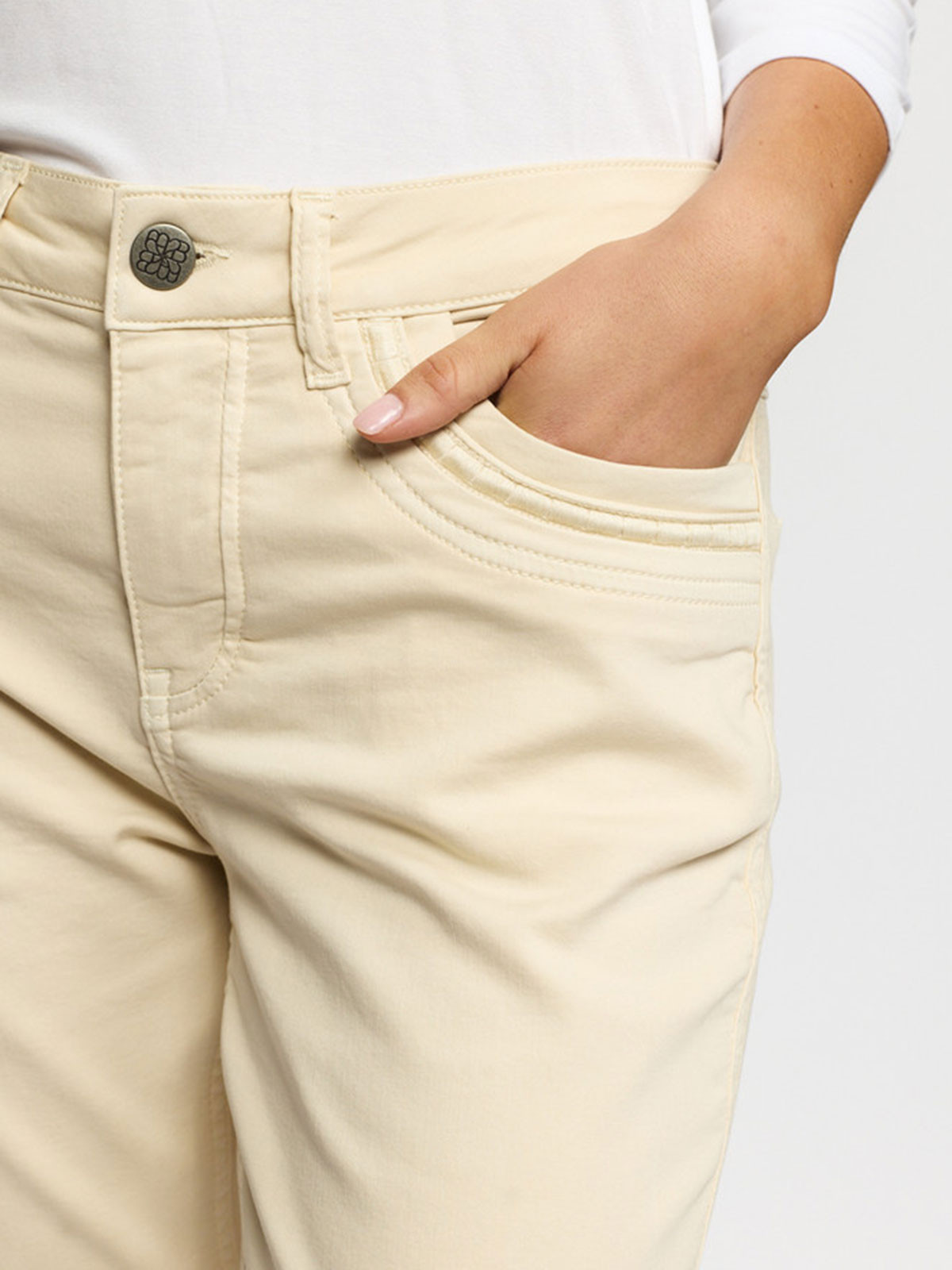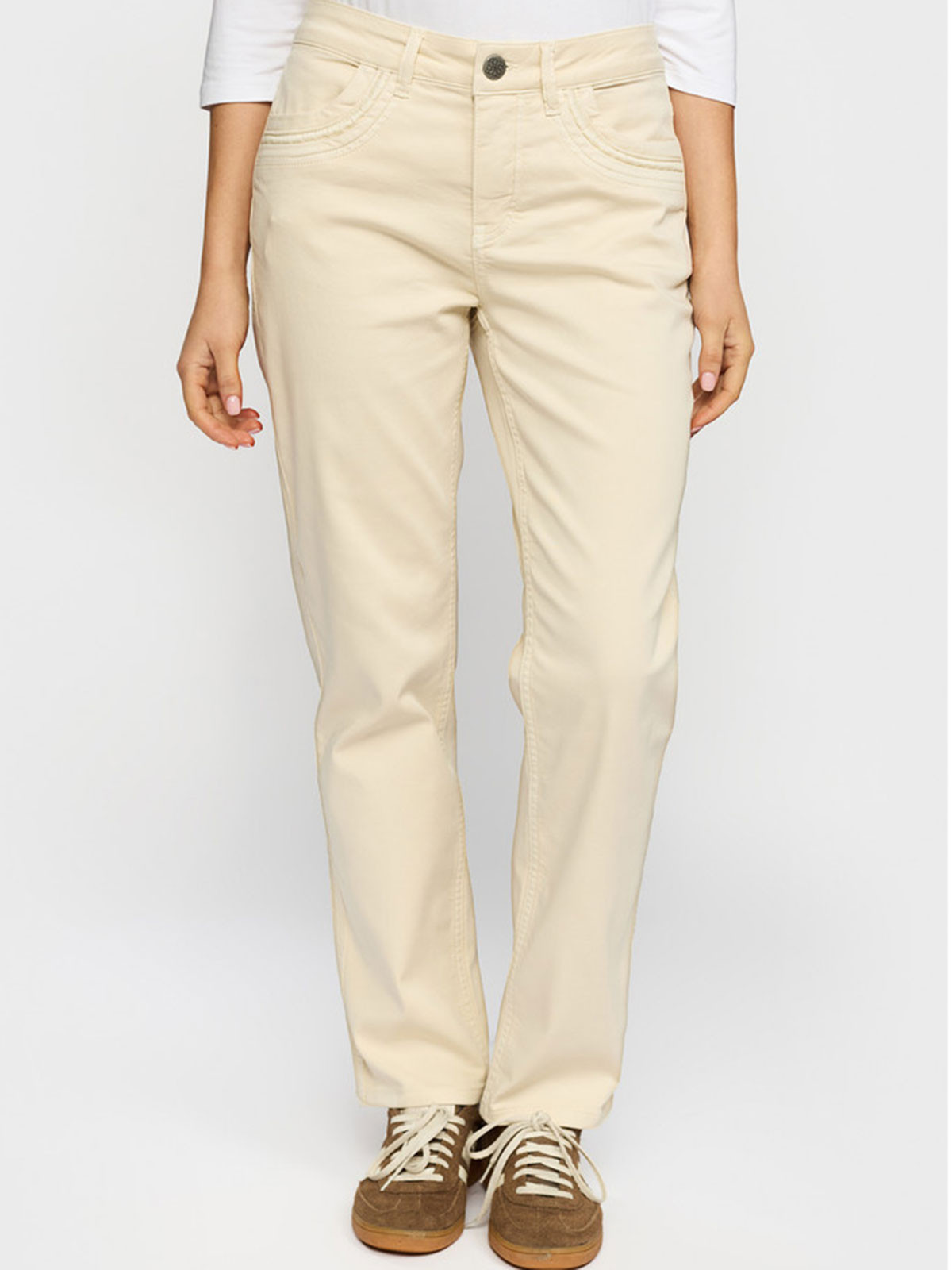 Dessa byxor från 2-BIZ har fina detaljer vid fickorna fram. En extra dekorsydd kant som ger dem karaktär. Byxorna med lagom mycket stretch är av klassisk femficksmodell med knapp och gylf. Benet är rakt och smalnar av något nertill.