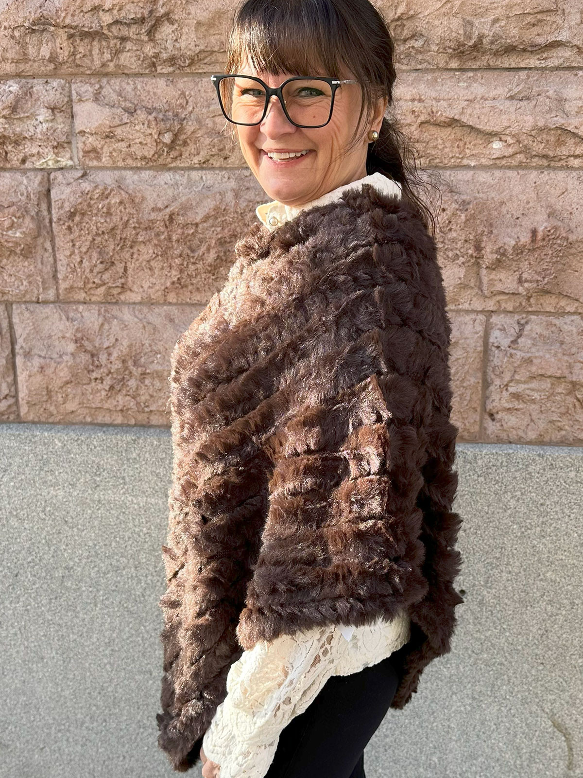 Poncho i fuskpäls espresso