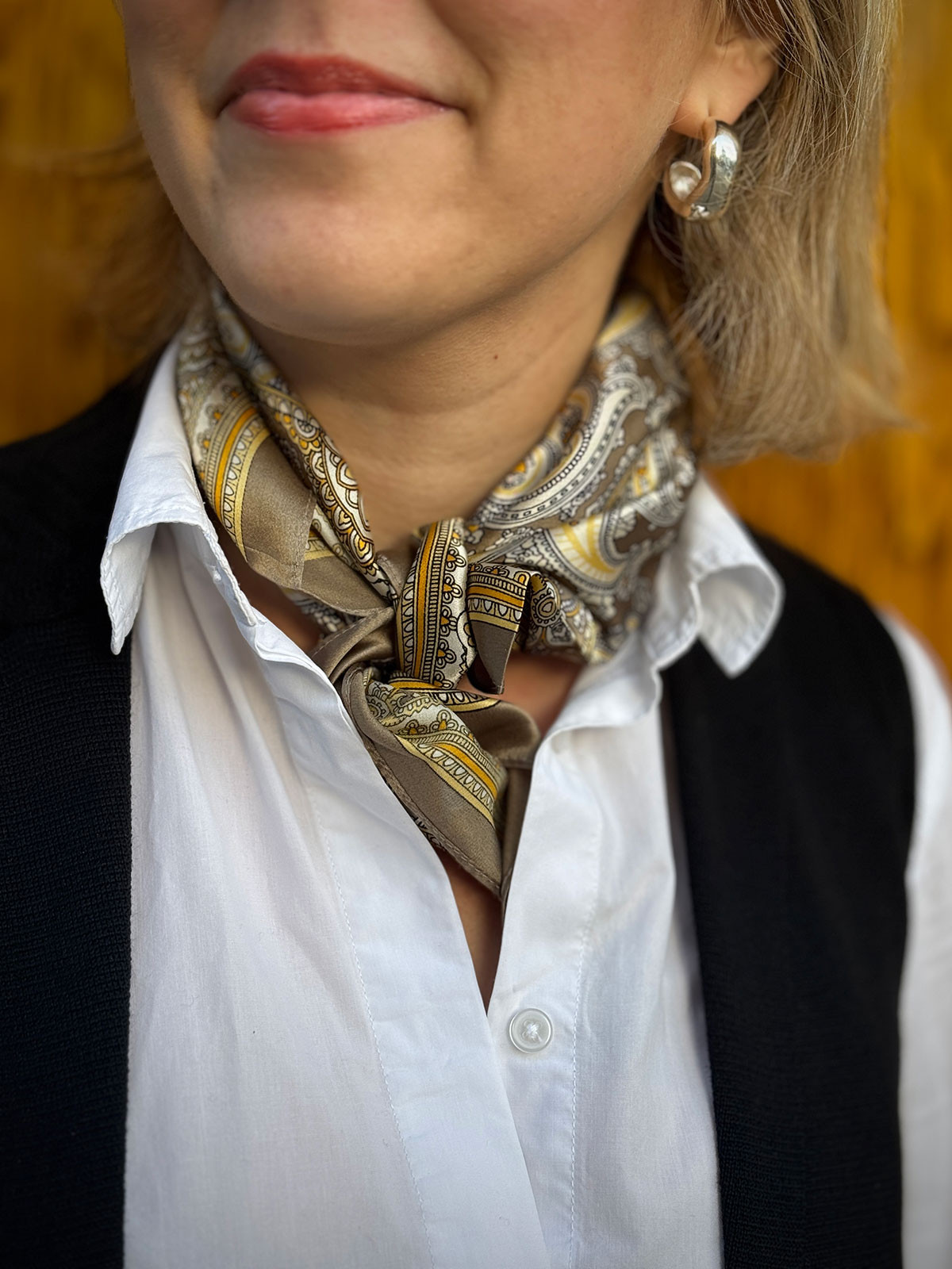 Sidenscarf khaki-guld paisley classic från 7EAST