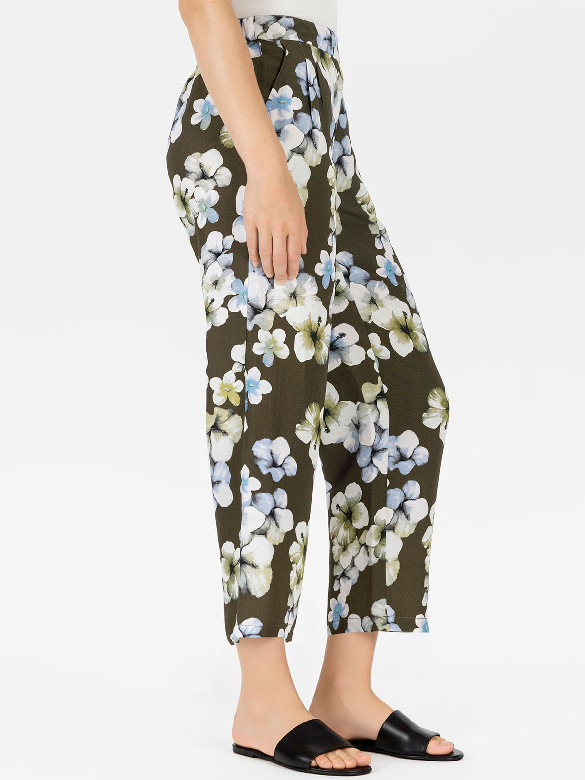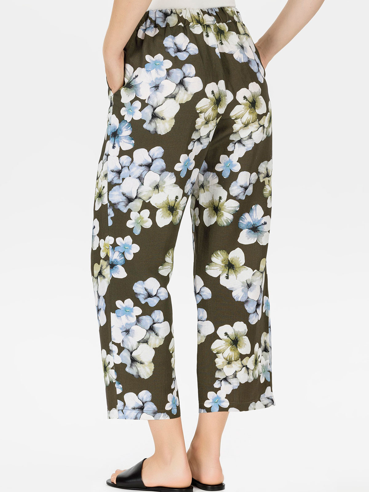 Härlig, luftig byxa i dra på modell från Stehmann! Mörkgrön med blommor på.