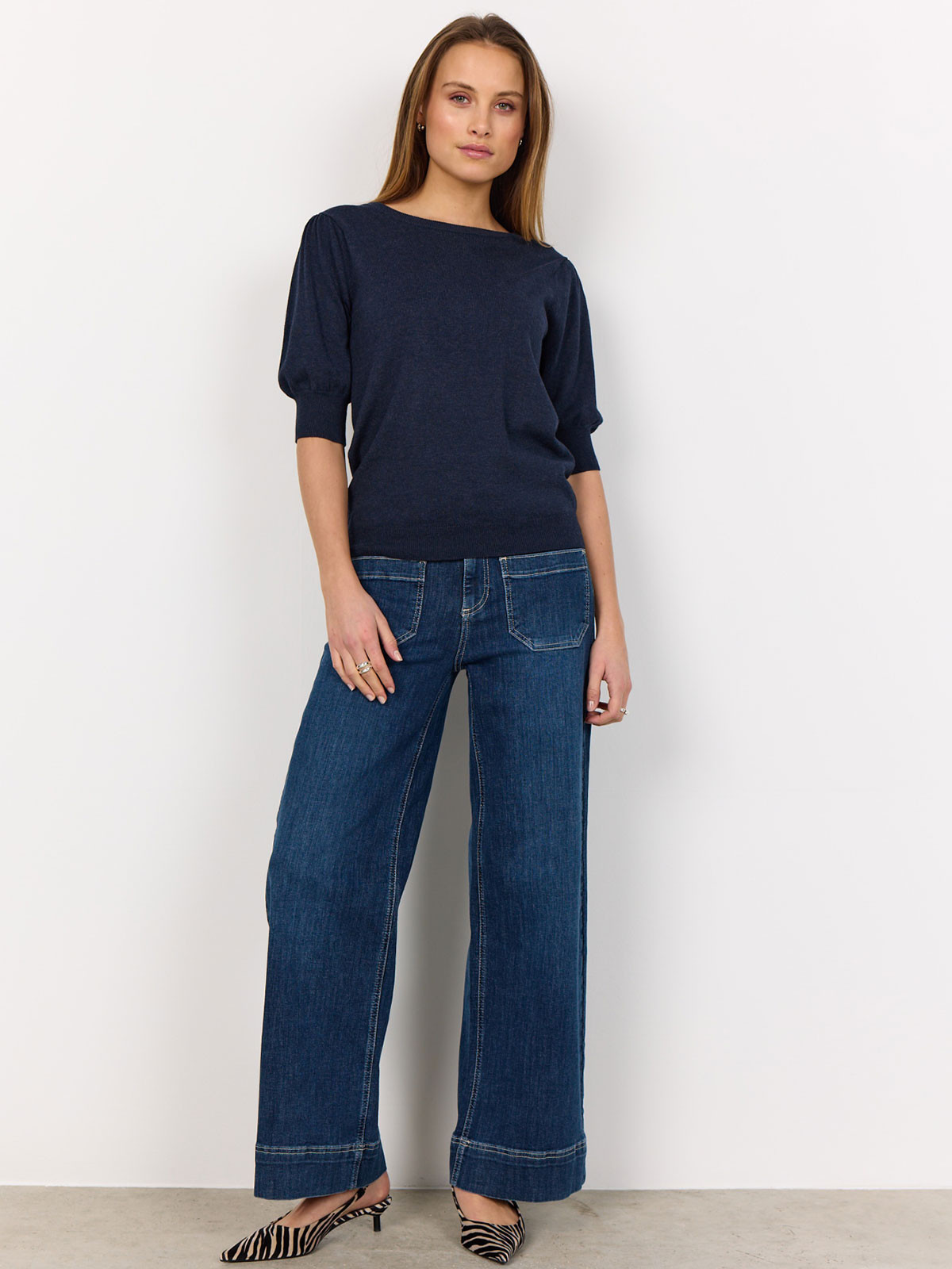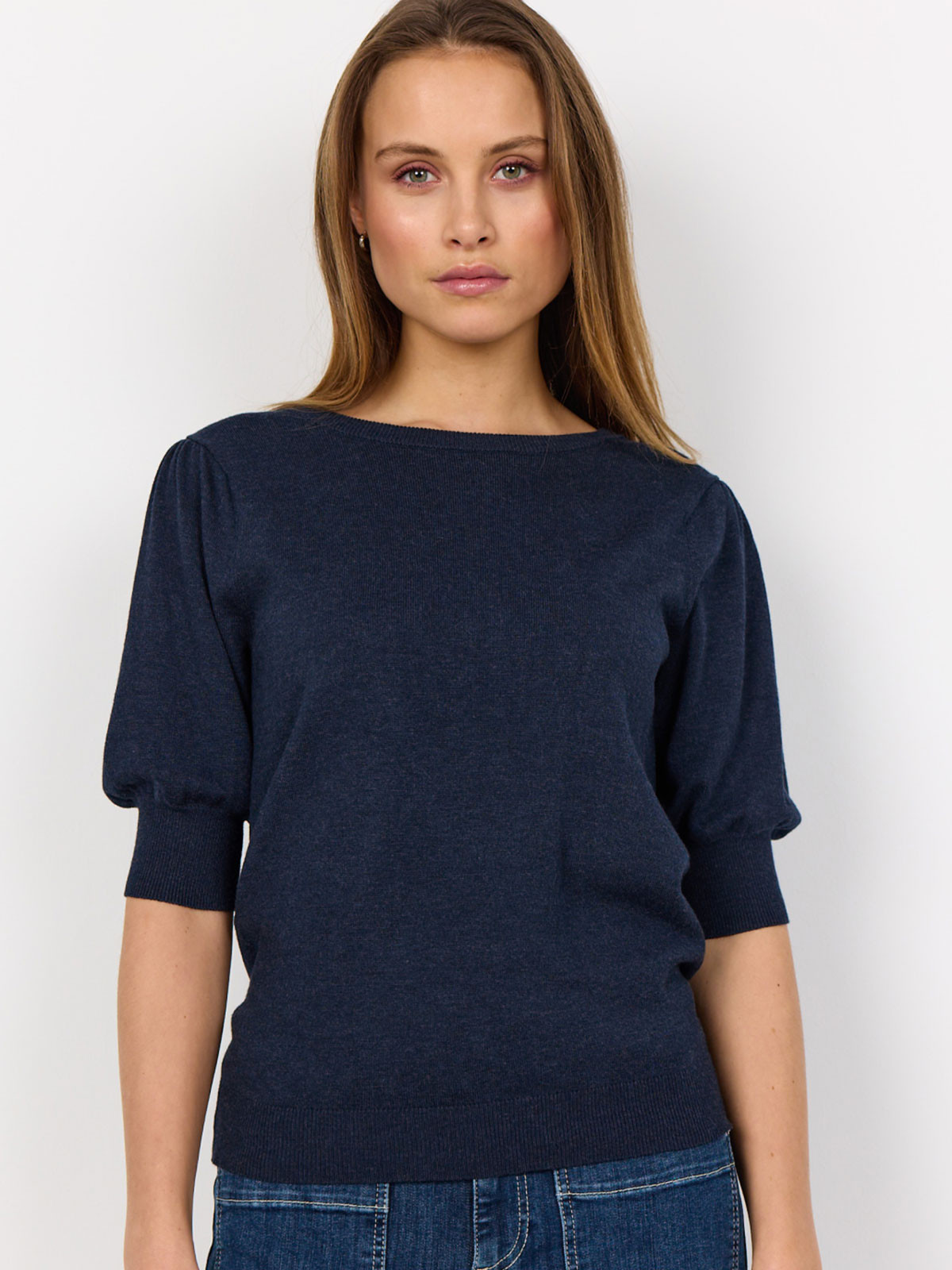 Finstickad Topp Dollie melerad marin från SoyaConcept