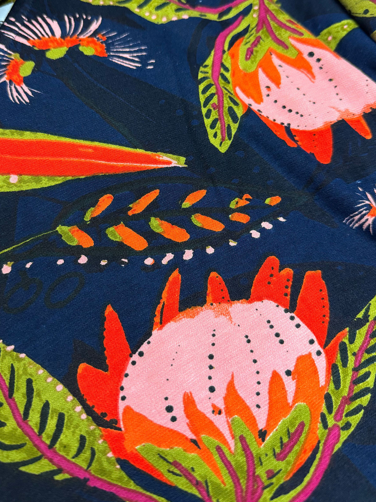• Marin bottenfärg med mönster i rött, grönt, svart mm