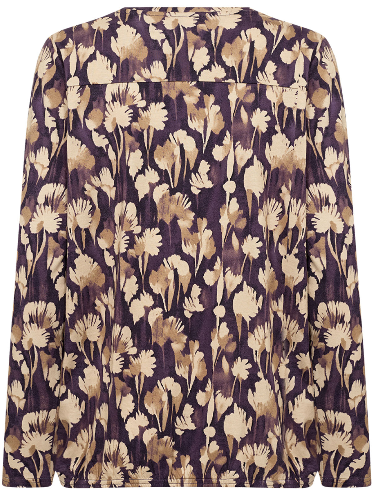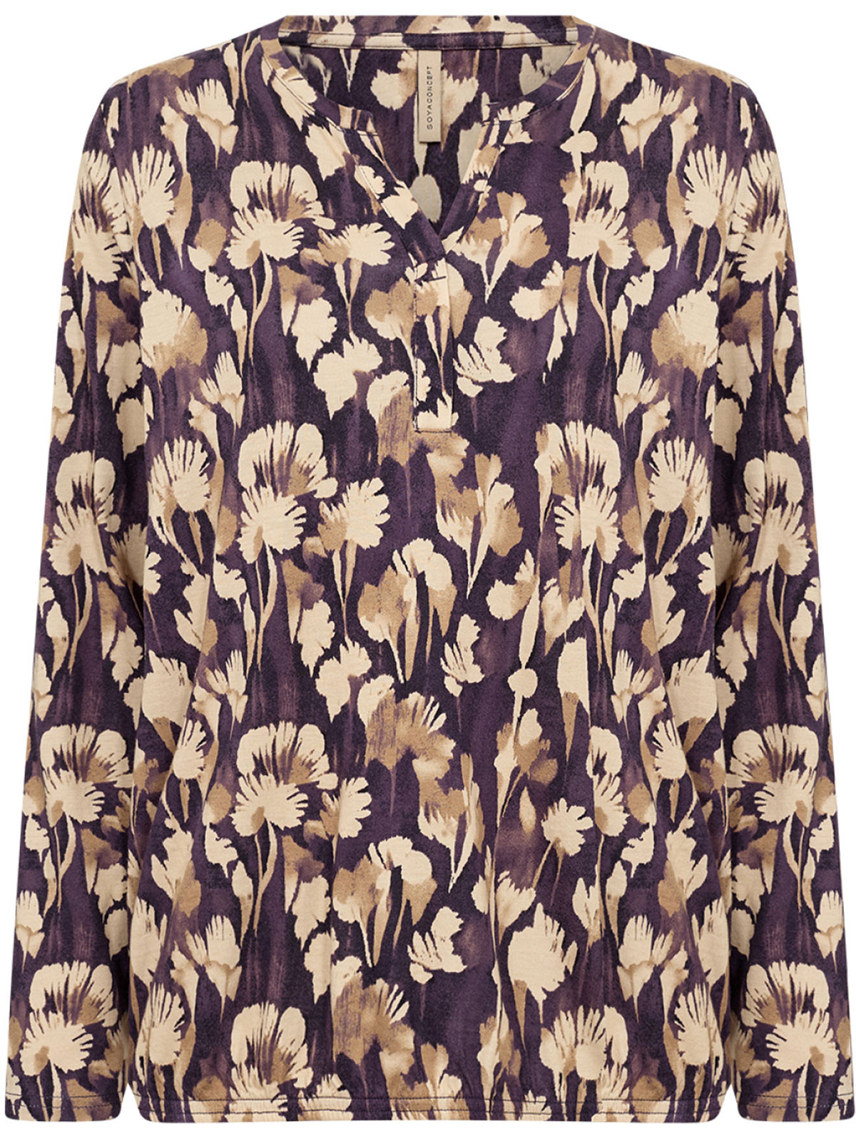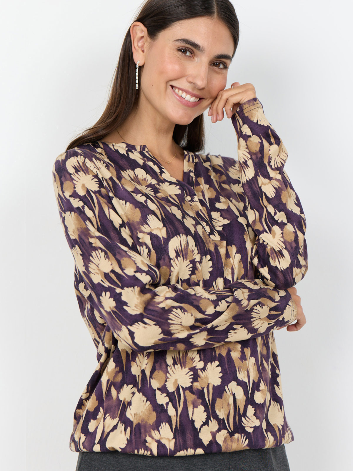 Skön trikåtopp med hellång ärm från SoyaConcept. Resår längst ned för att kunna blusa upp den och justera längden som du vill.